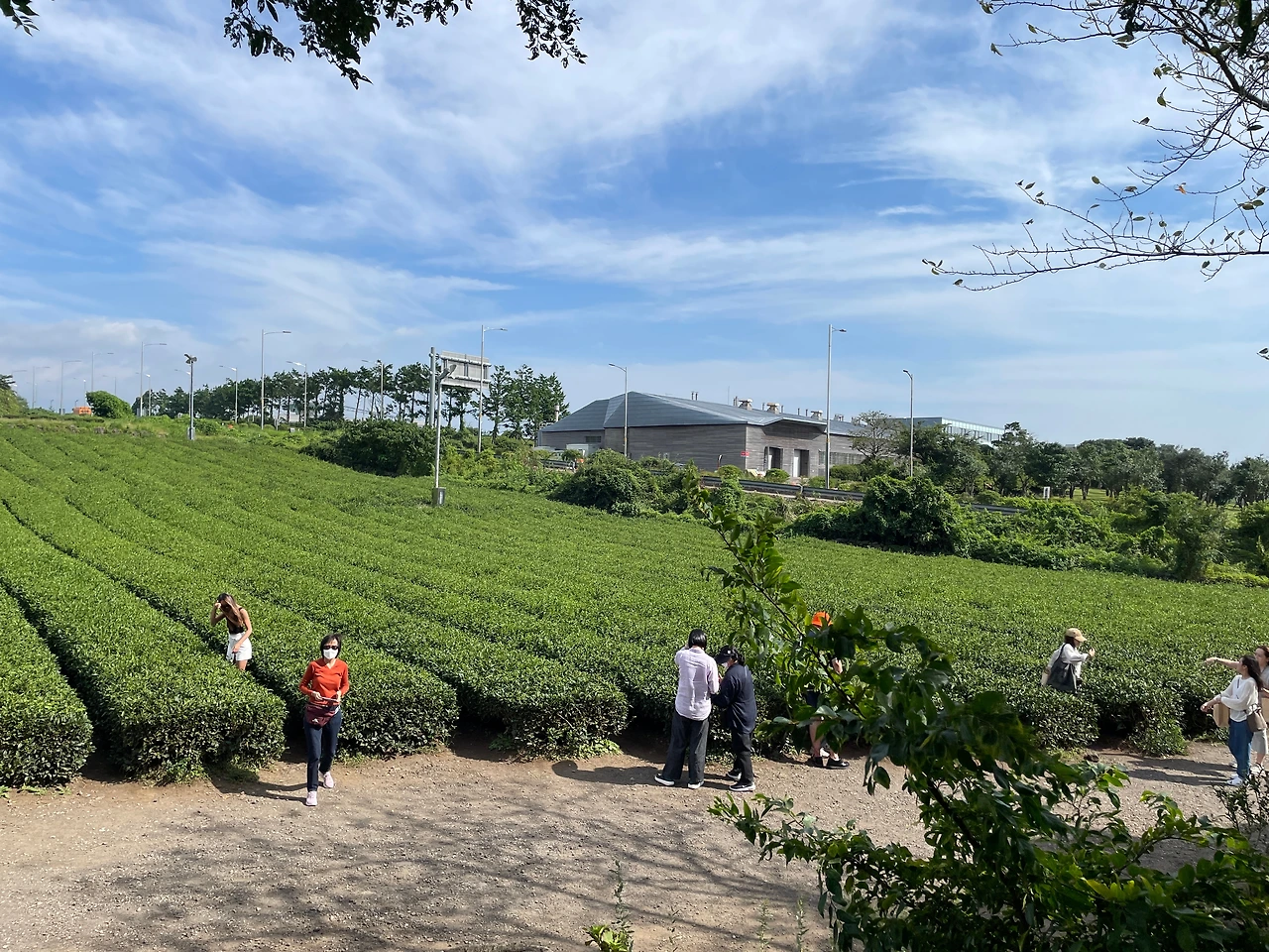 초록의 녹차잎들 사이에 선 사람들은 모두 자기만의 포즈로 연신 인증사진 찍기 바빴다