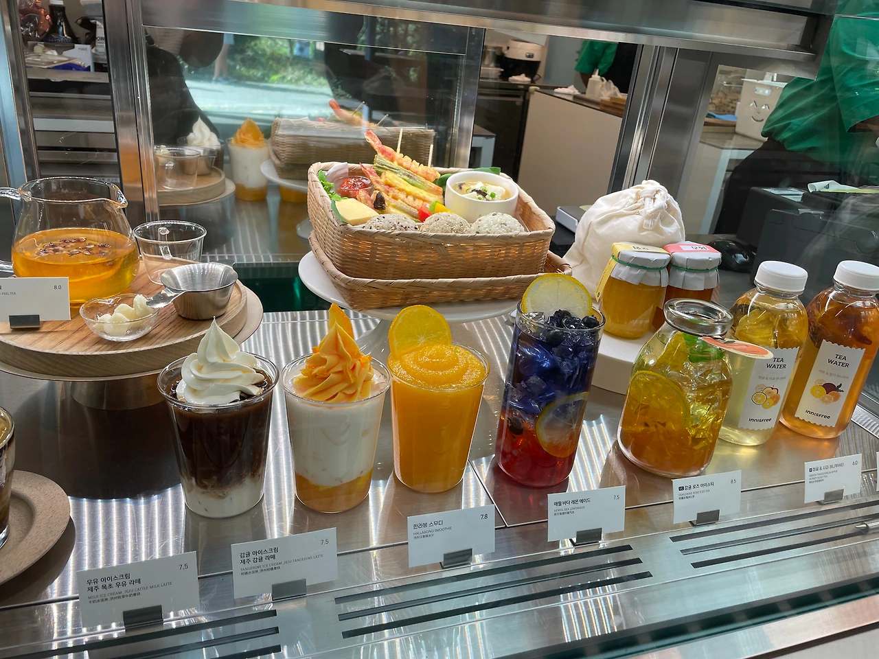 알록달록한 음료 들과 기발한 간식들 구경이 솔솔 해 기다림이 지루 하지 않았다.