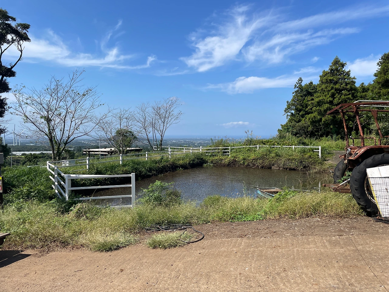 뒤쪽은 농가 또는 농장이 있는지 축사로 보이는 건물 들과 트랙터 그리고 트럭들이 보이고 꾸억 꾸억 하는 낮은 돼지 소리와 저 멀리 흐흐헝 거리는 높은 말울음소리가 들려왔다.