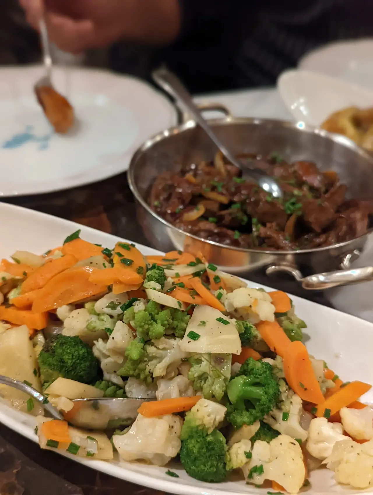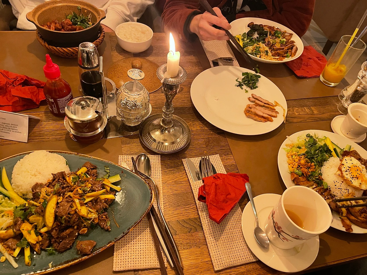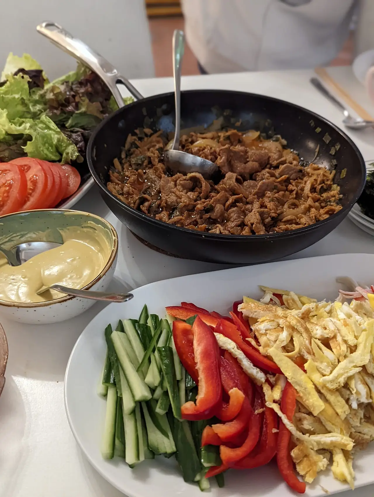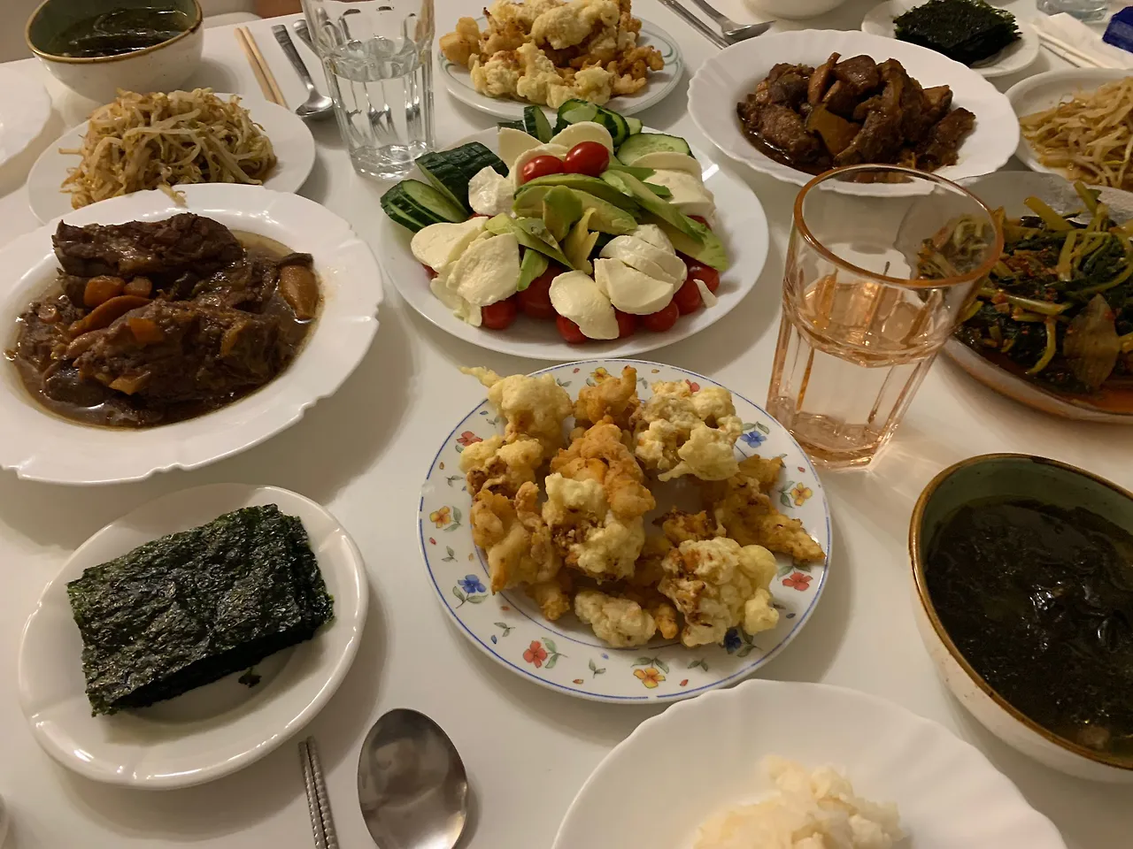 그래서 어느 때는 미역국에 한식이 될 때도 있고 또는 이태리식 누들, 스페인 요리, 중식 또는 베트남 요리 일식 초밥, 독일 가정식,독일식 돈가스, 햄버거 기타 등등…