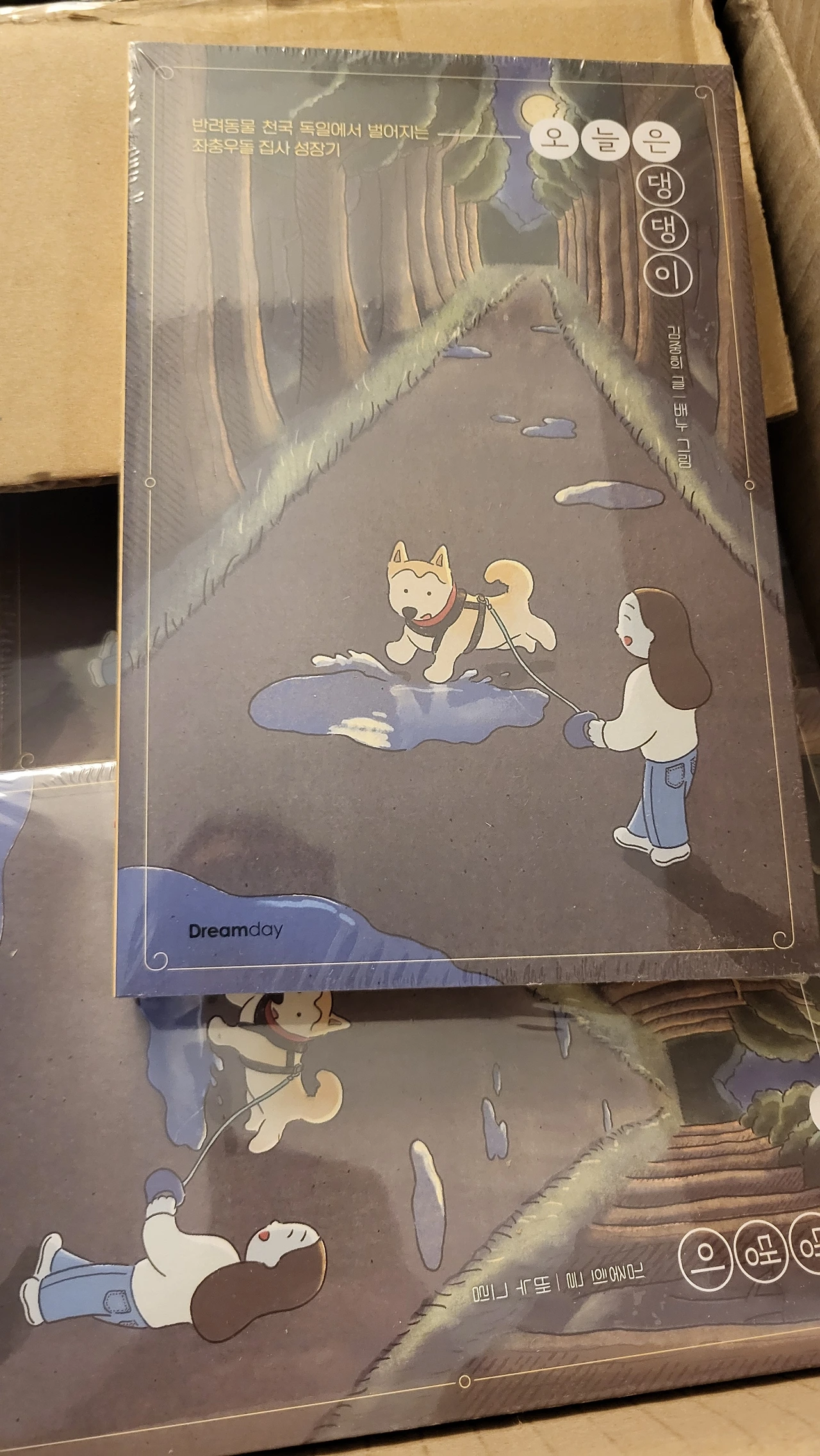 두꺼운 종이를 꺼내고 나니 그 안에 책이 비닐 포장 되어 요렇게 예쁘게 담겨 있지 뭡니까