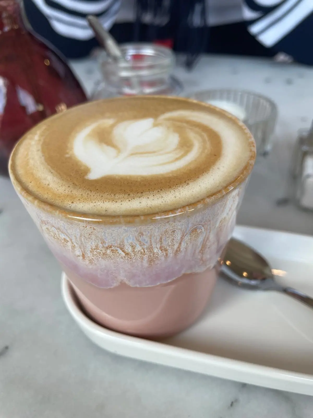 앙징맞은 핑크 도자기잔에 나온 카푸치노도 진하니 우리 입맛에 딱 맞았고