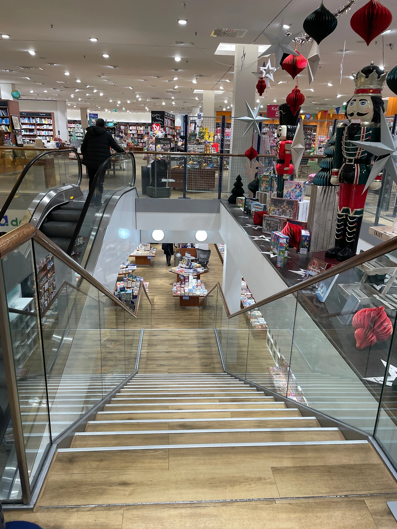 그소리가 끝나기도 전에 후다닥 뛰어서 에스컬레이터를 타고 위층으로 이동하는