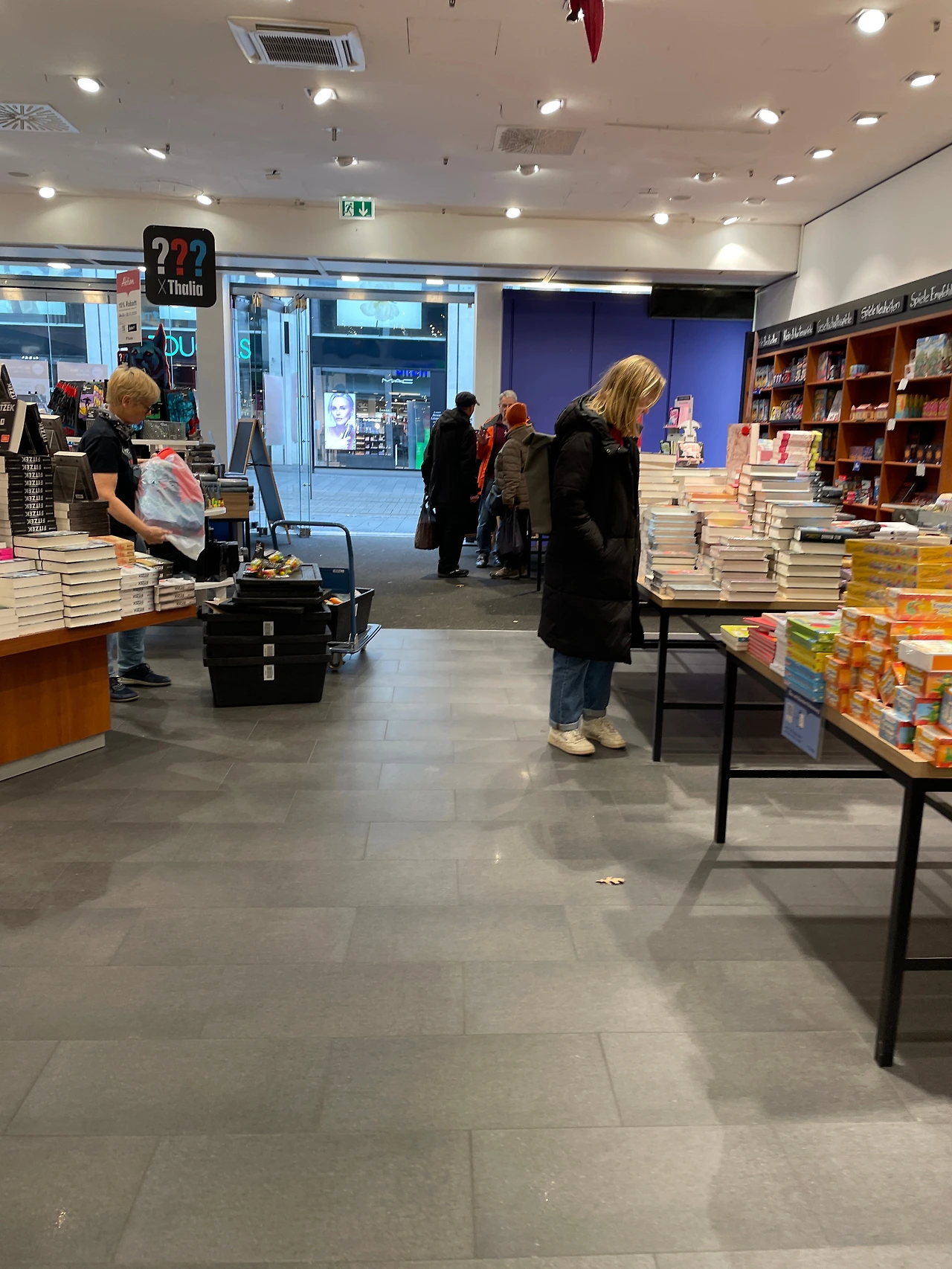 자주 가는 카페 까지도 상황으로 보아 너무 모험이고 옷가게 바로 옆 건물인 대형서점 안에 화장실을 이용하고 그 영수증으로 북카페를 가기로 했다.