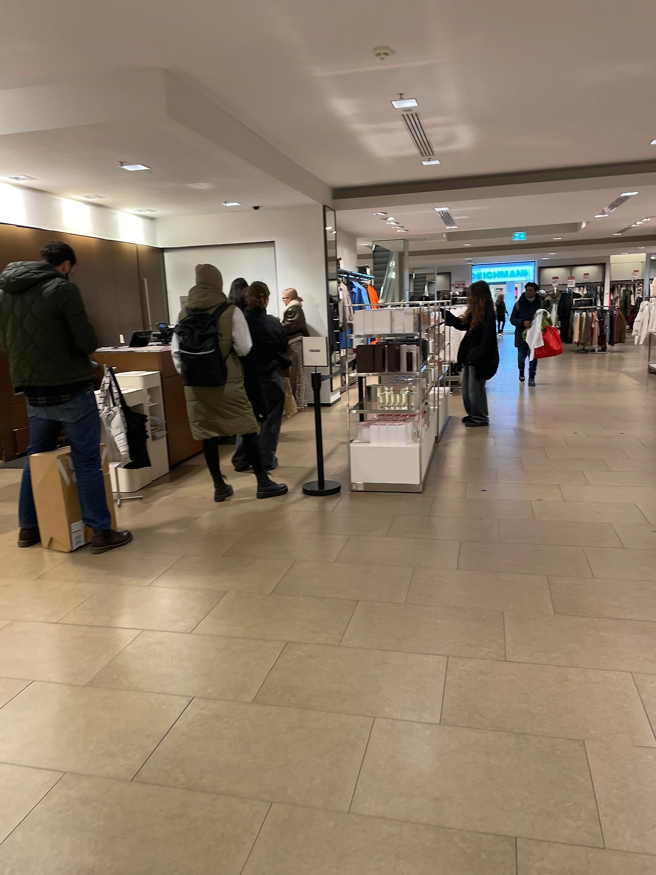 "지금 계산하시려고 줄 서시는 분들 위층에 아동복 코너 계산대는 비어 있으니 그쪽을 이용해 주시면 감사하겠습니다.!"