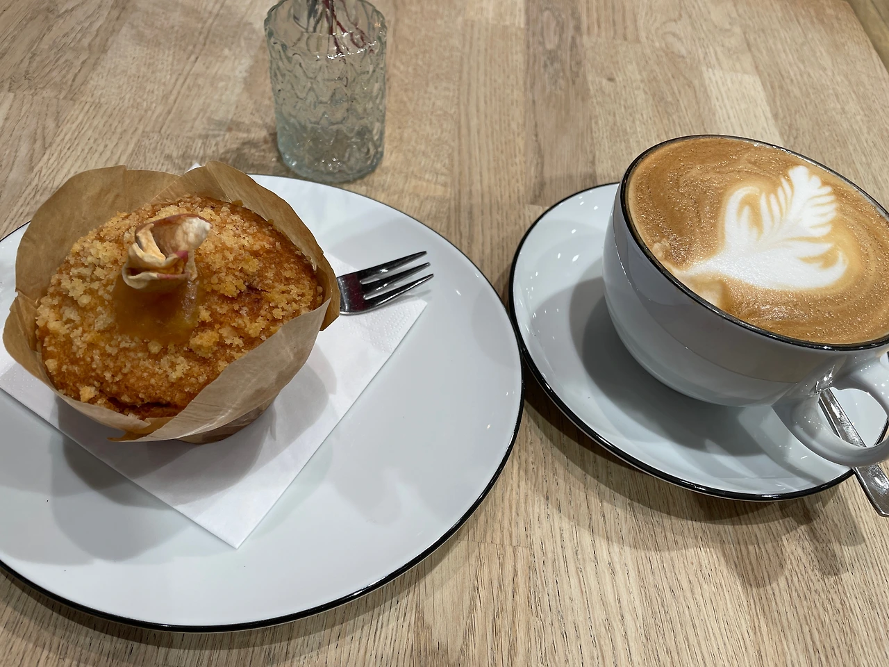 나는 카푸치노와 애플 머핀을 받아 들고 고마워요 를 남기고 자리에 앉았다.