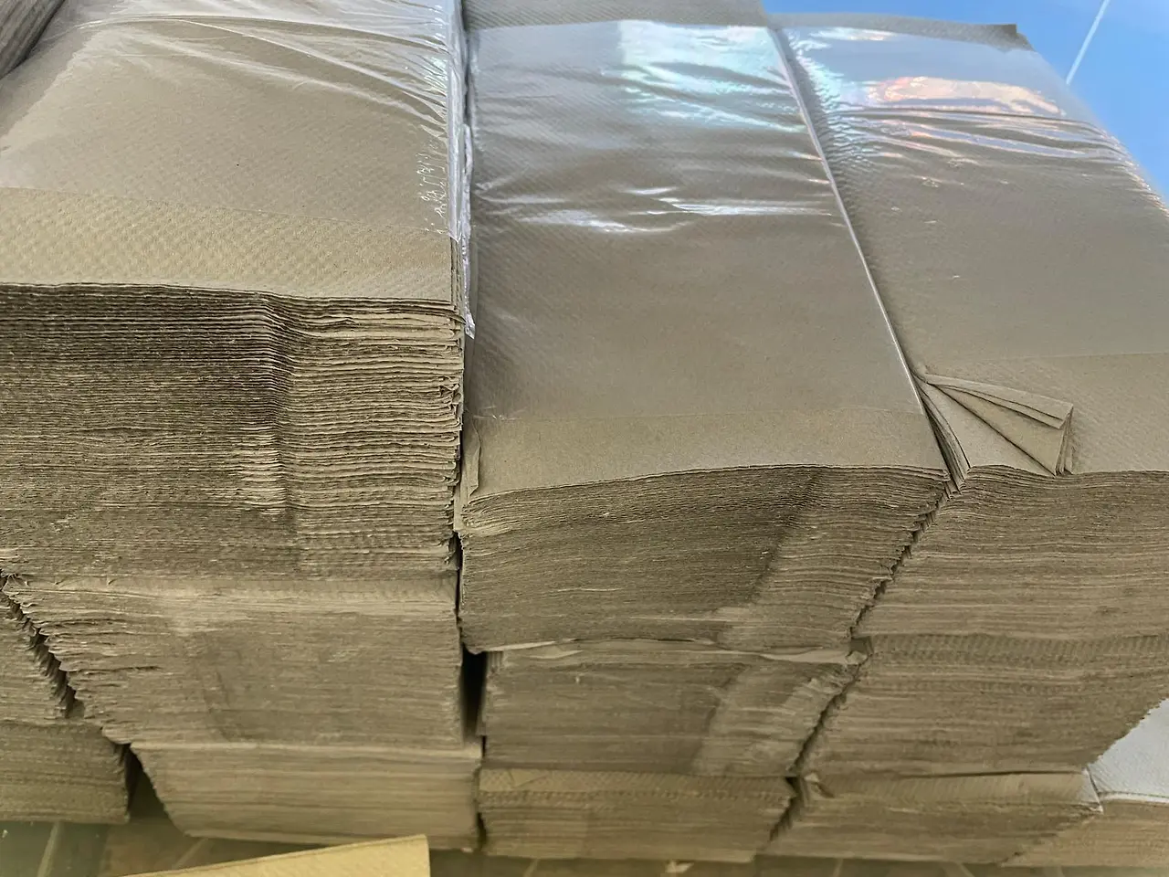 각 핸드타월 통에는 100장짜리 두 뭉치 또는 세 뭉치가 한 번에 들어간다.