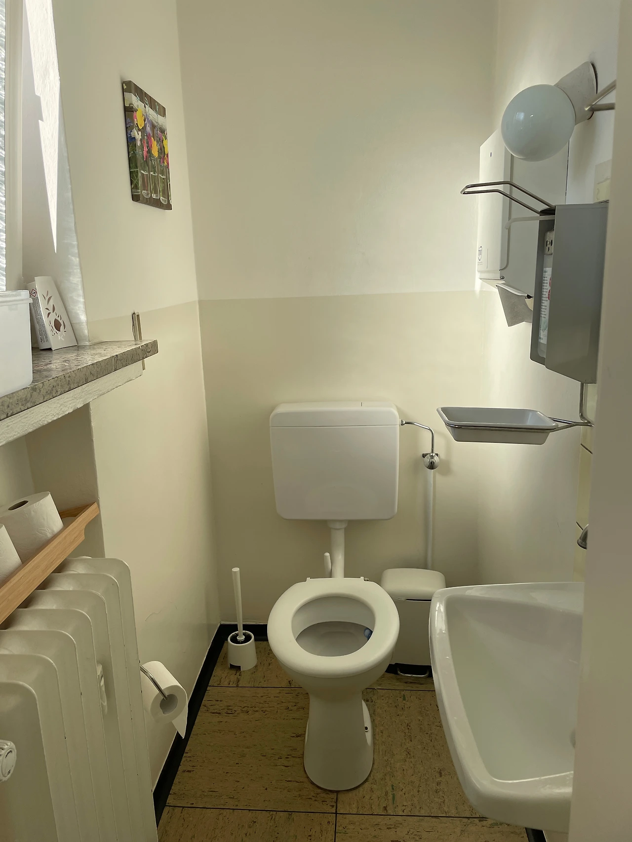 독일의 병원이나 공공 기관 화장실을 가면보통 변기 옆이나 뒤쪽에는 두루마리 휴지가 걸려 있거나 놓여 있고 세면대 옆에는 손닦을 알코올과 손세정제 그리고 일회용 핸드타월 통이 비치되어 있다.