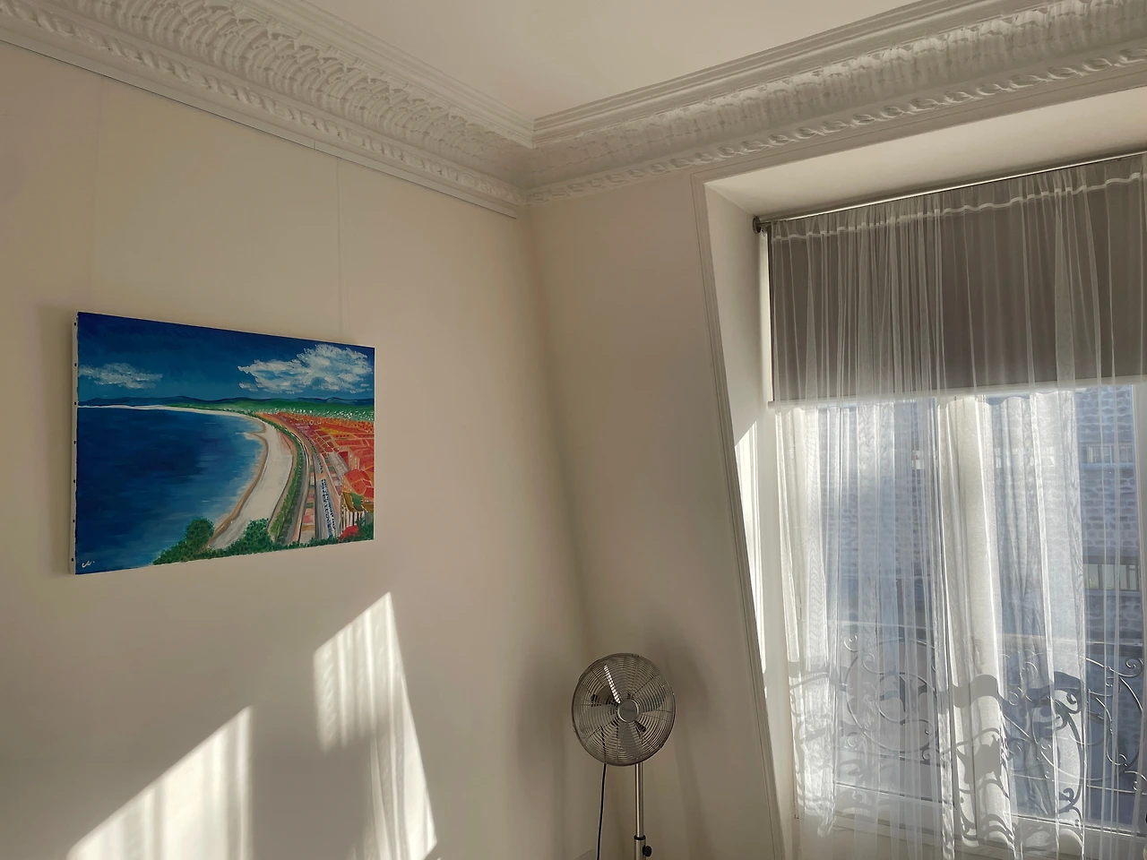 벽 한가운데 걸려 마주 보고 있는 해수욕장그림도 낯설다 매우 낯설다