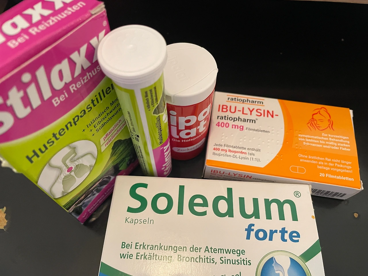 남편은 생강차뿐만 아니라 중간중간에 비타민 C 도 보충하고 생약 성분의 기침약 Soledum 도 하루 세 번 먹고 목감기 기침에 도움이 되는 무설탕 목캔디 Ipalat 그리고 Stilaxx 도 틈틈이 먹었다.