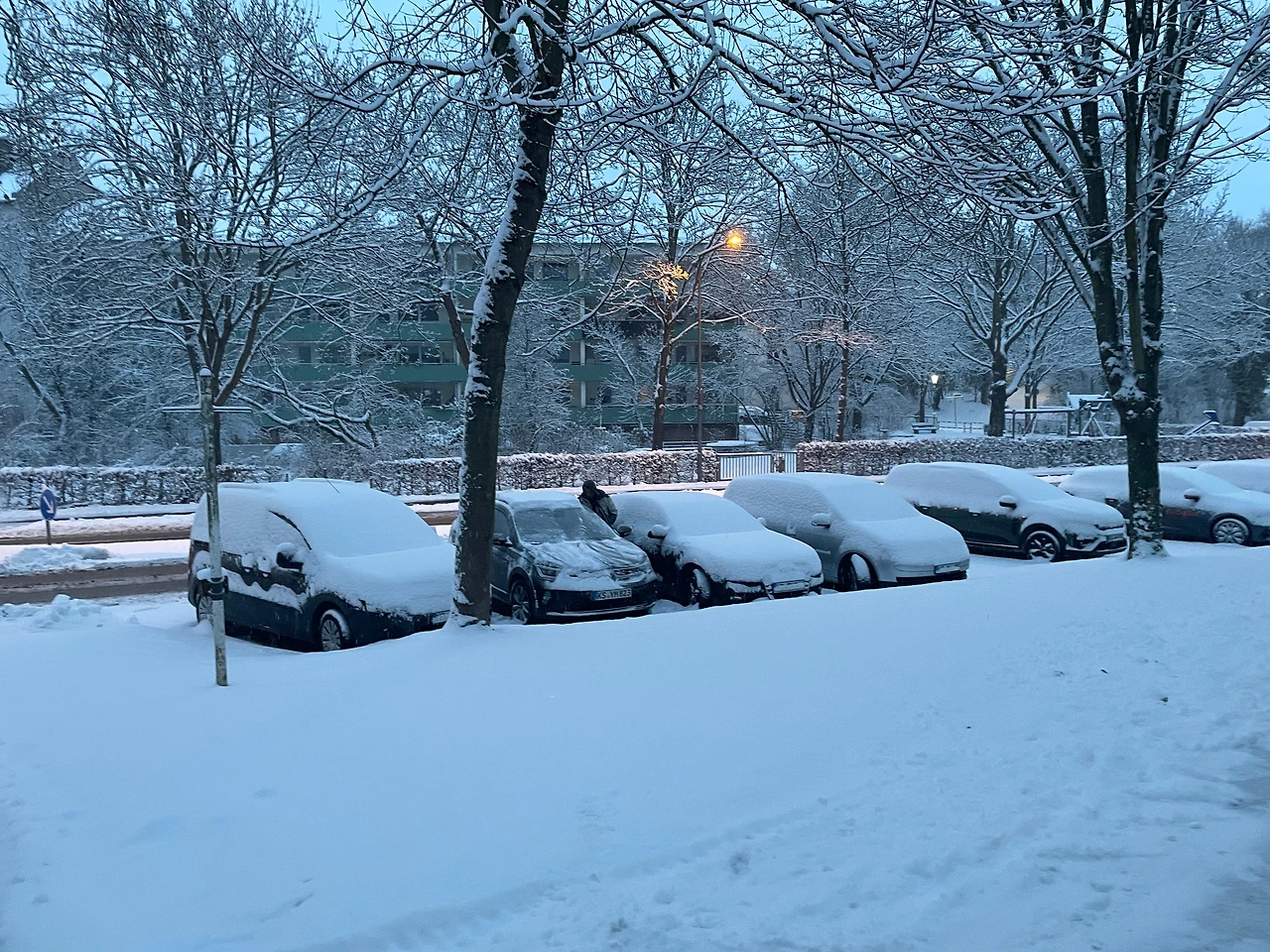 겨울, 독일에서 눈 오는 날이면 여기저기 하얗게 쌓여 작은 언덕이나 둔덕이 된 곳은