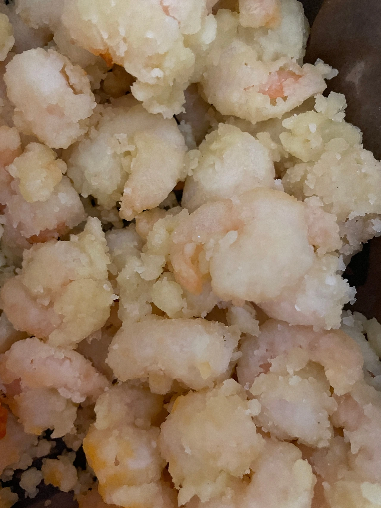어른 아이 할 것 없이 안심하고 먹을 수 있게 꼬리까지 떼어낸 탈각 새우였던 게 화근이었을까. 작은 새우들이 옹기종기 모여 밤새 서로의 수분을 정답게도 나눠 가진 것이 틀림없었다. 게다가 밖은 독일 특유의 햇빛 한 점 없는, 습도 높은 겨울날이 아니던가.