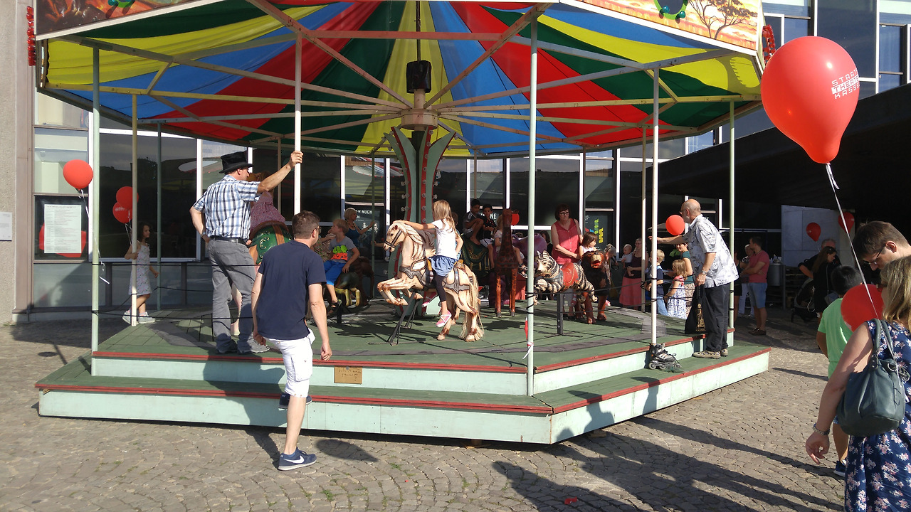 극장 측 에서 만들어 놓은 회전목마를 타는 꼬맹이들...