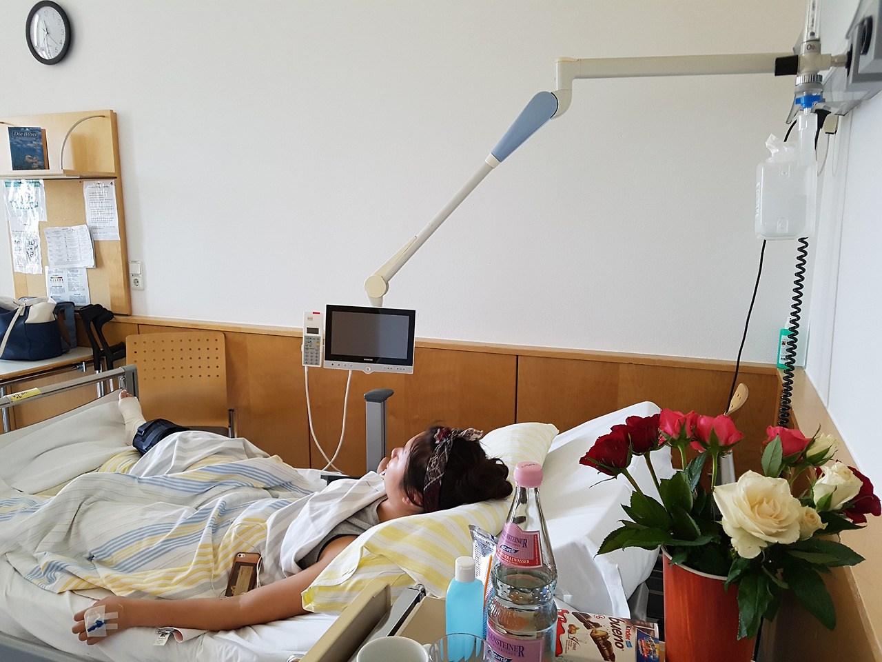 독일의 일반적인 입원실 내에서는 보호자가 함께 잘 수도 없고 24시간 있을 수도 없다.(*소아과 병동은 부모가 원한다면 작은 간이침대를 옆에 놓아준다)