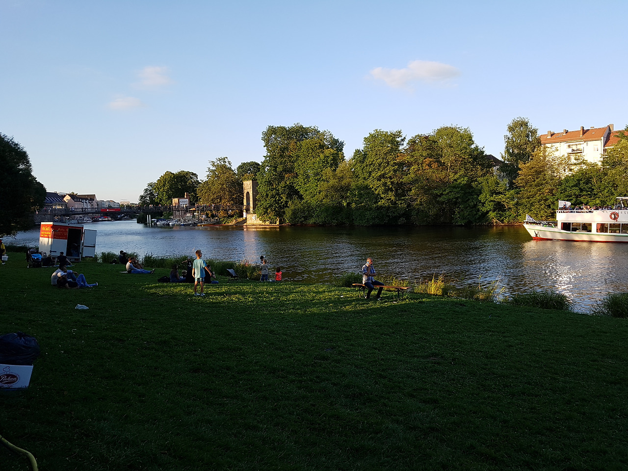 더위를 날린다... 덕분에 강 물줄기가 보이는 곳에 들어선 Bar 바 들과 Biergärten 에는 앉을자리를 찾기가 매우 어렵다.