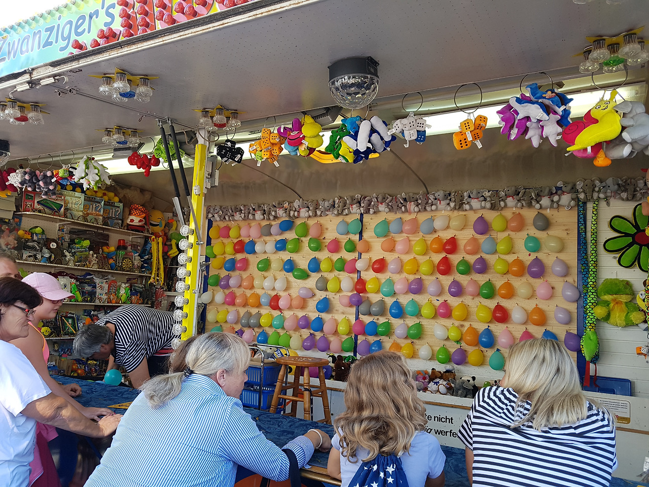 풍선 터트려 맞추기 코너에서는 5유로 를 주고 5개 터트려서 작은 공을 하나 선물로 받았고