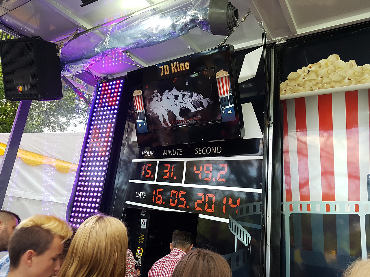 그리고 커다란 트럭 같은 곳에 문이 열리고 의자에 앉아 안경을 쓰면 문이 닫히고 그 안에서 의자가 뒤로 뒤집어지기도 하고 옆으로 자빠지기도 하며 바람도 팍팍 불어 줘가며 잠시도 가만히 놔두지 않은 체 짧은 영상 하나를 보고 나오는 7D 영화관..