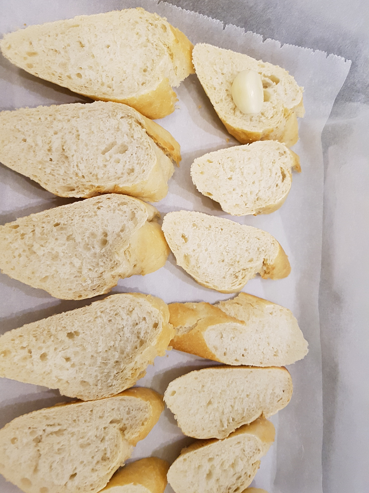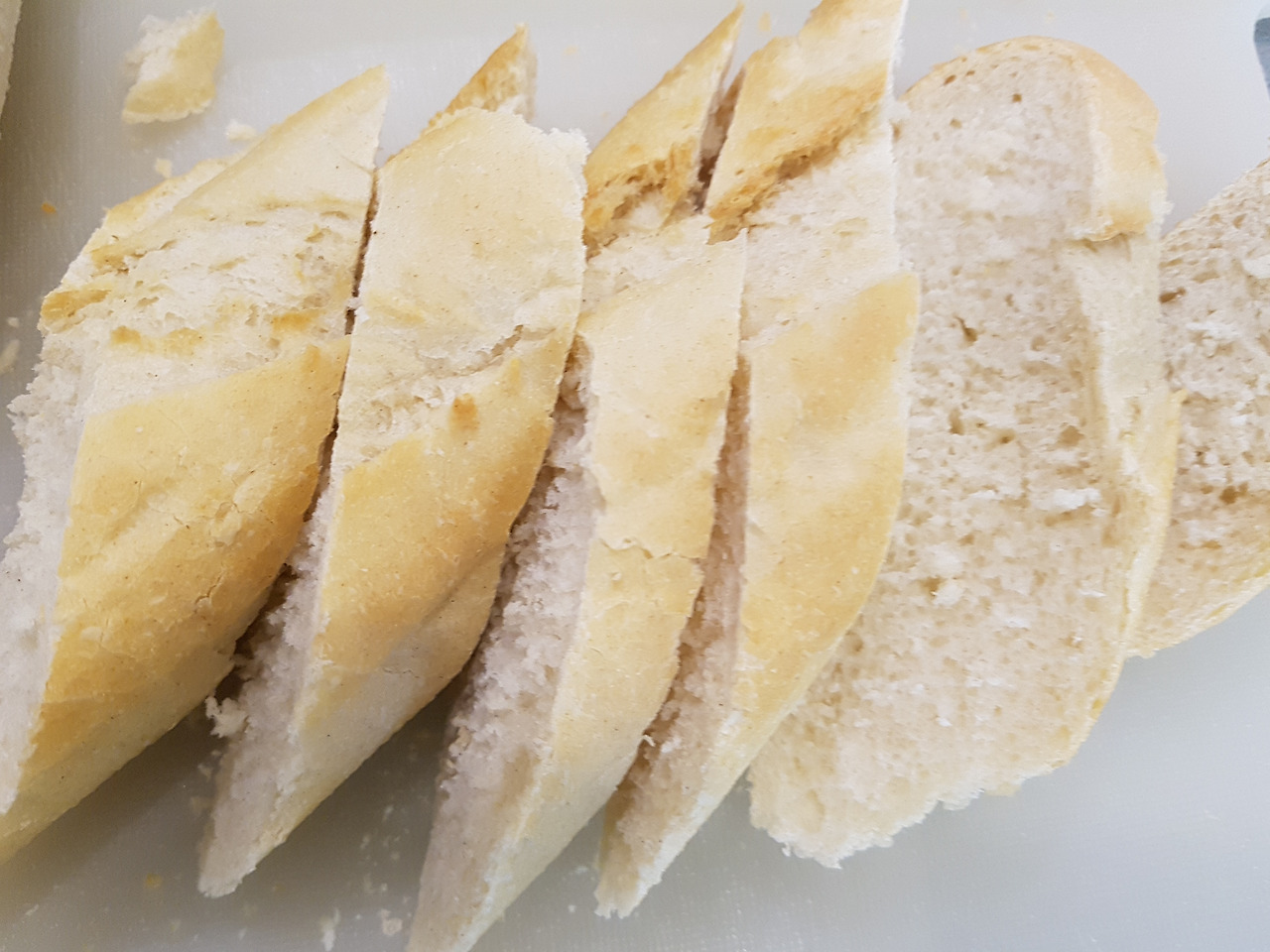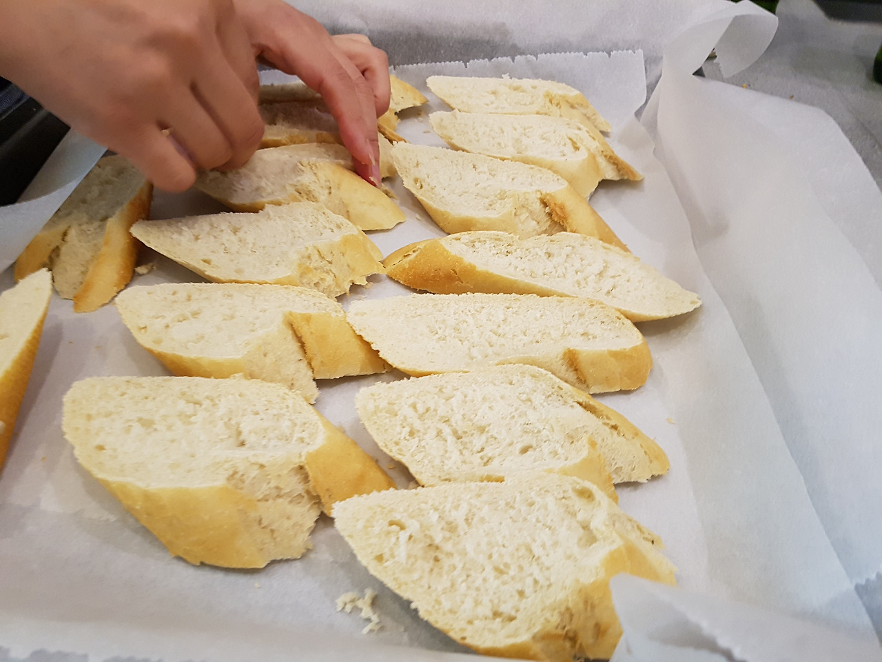 1. 제일 먼저 바케트 빵을 길쭉길쭉 썰어서