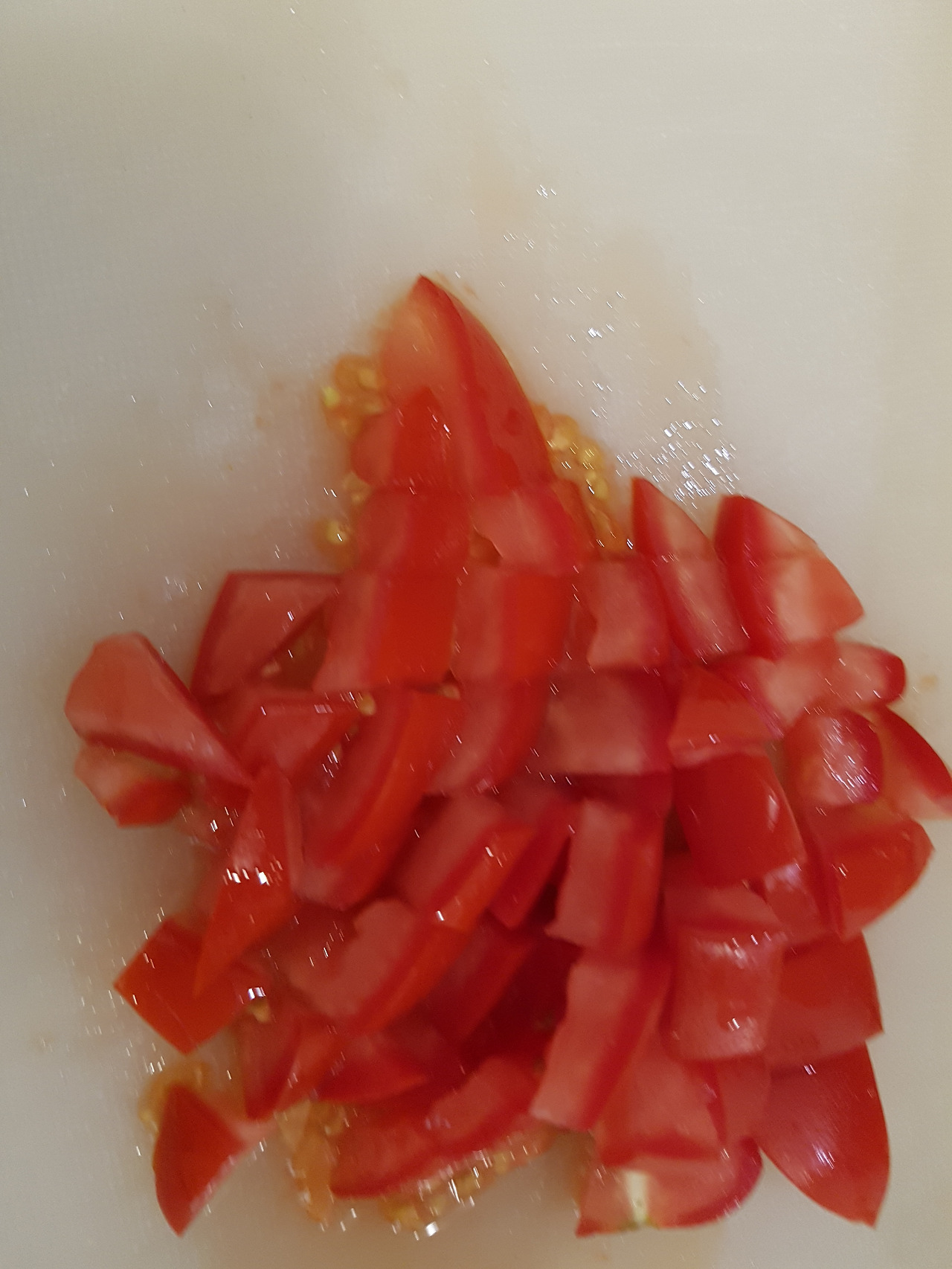 까서 쓰기도 하는데 식구들이 토마토의 빨갛고 아삭한 식감을 좋아해 껍질째 씁니다