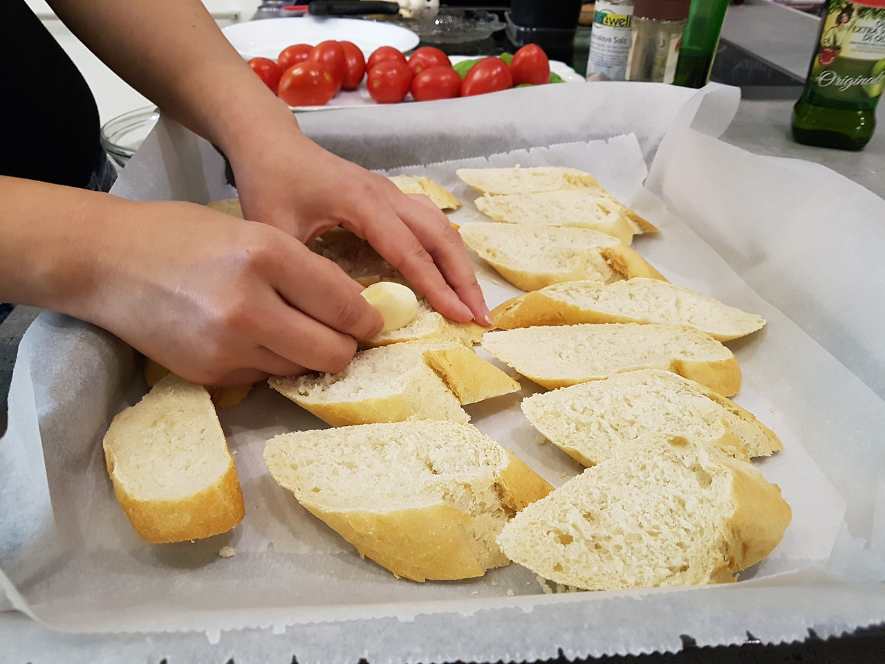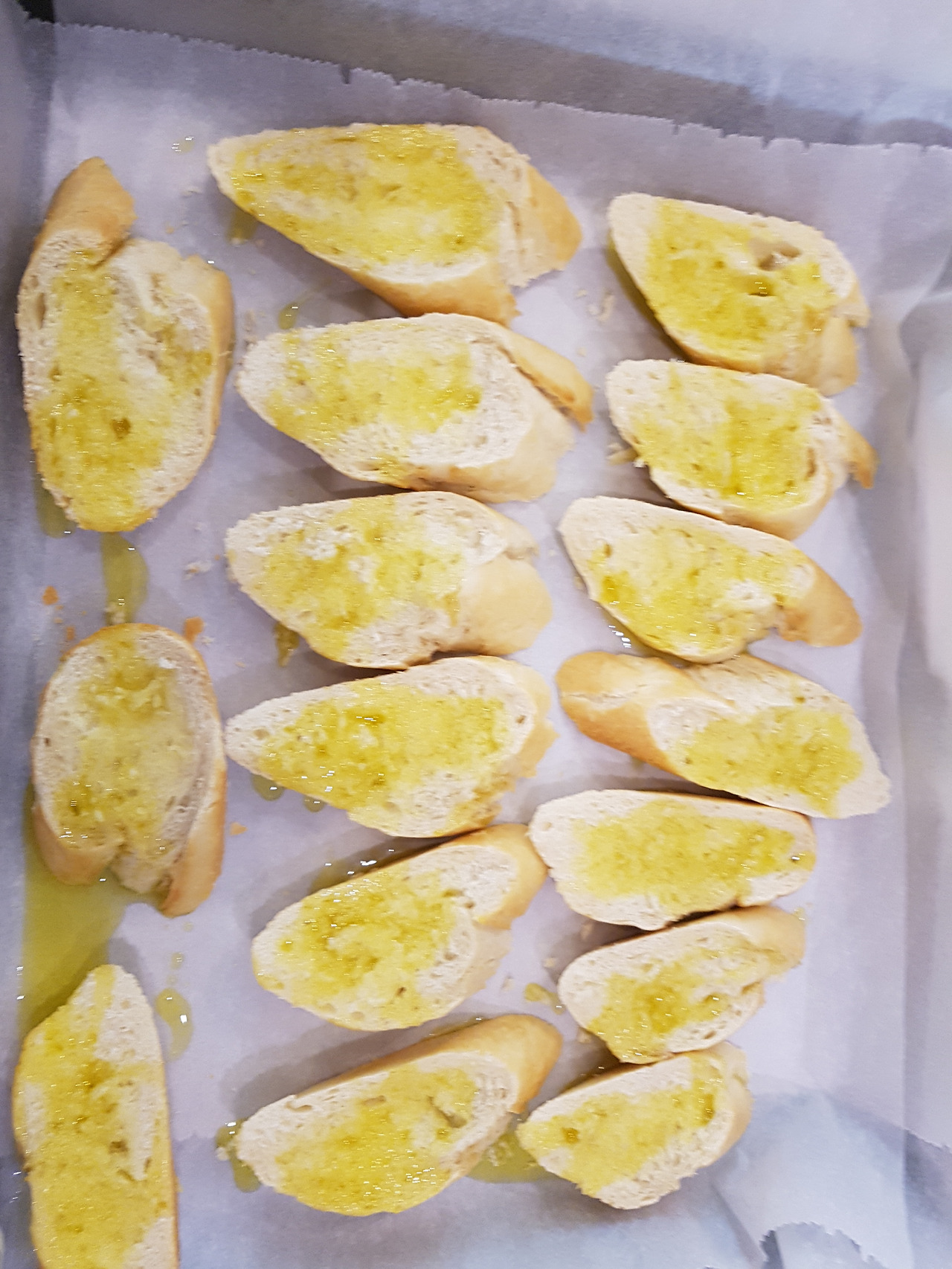 2. 그 후에 올리브 오일을 빵에 발라 줍니다.