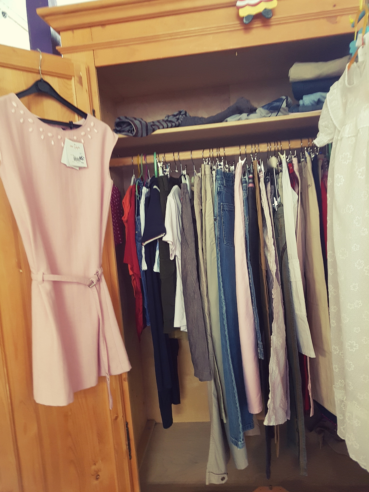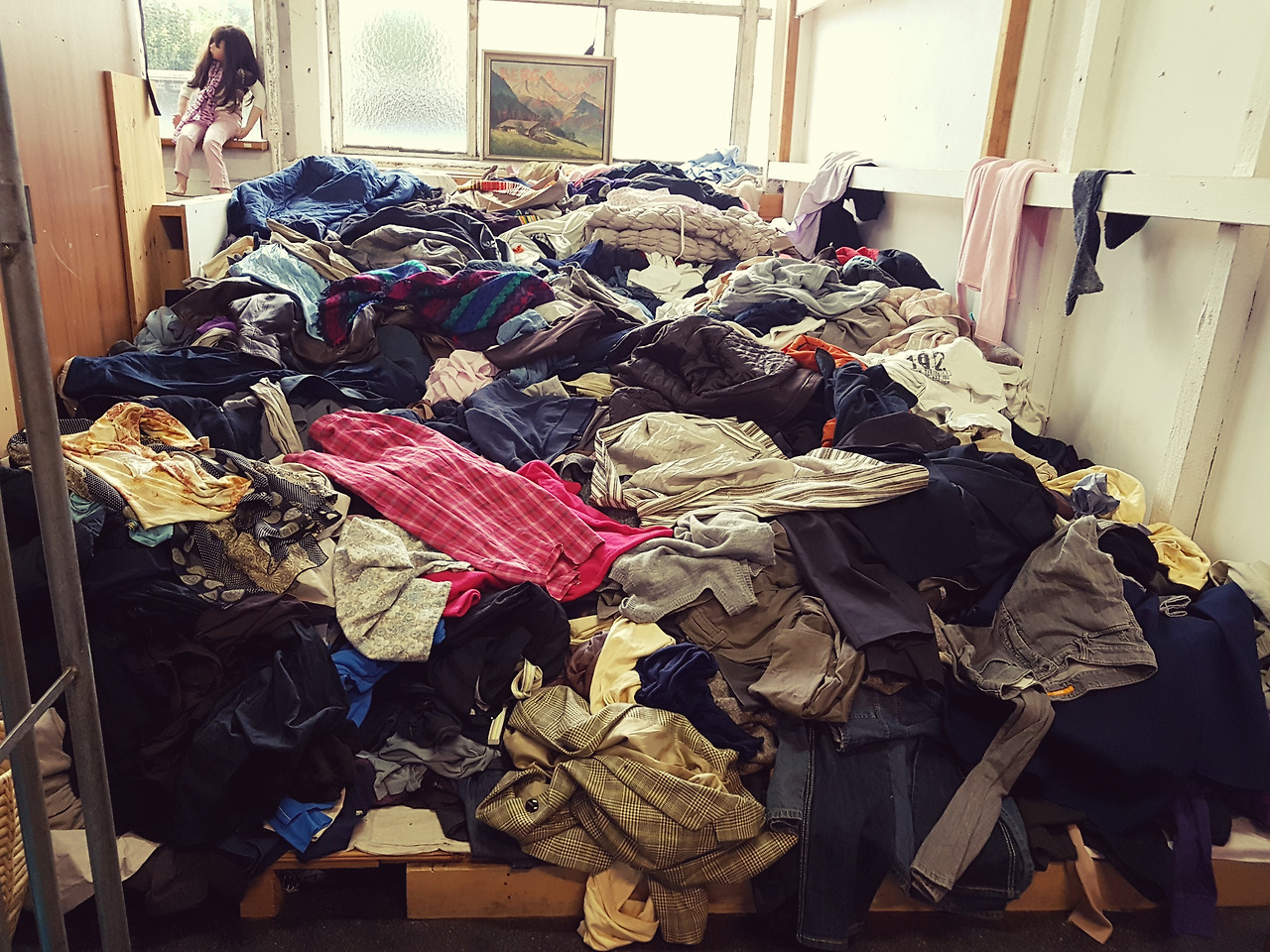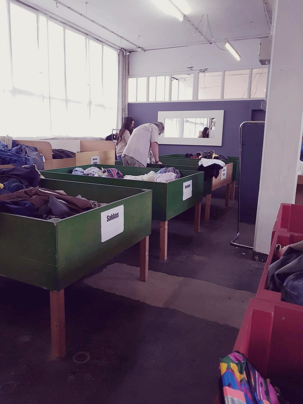 걸려 있는 옷들은 가격이 매겨져 있었고 통속에 들어가 있는 또는 산처럼 쌓여있던 옷더미 들은