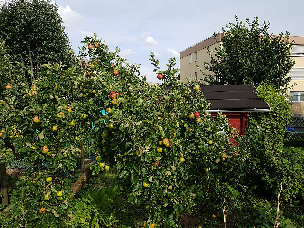 이리저리 둘러보다 보면 온갖 정성 다 들여 정원 하우스를 가꾸는 집들도 보이고 벌써 콜라비에 호박에 주렁주렁 탐 스러이 열린 채소들과 사과 자두 등의 과일을 수확할 때가 다 되어 보이는 집들도 보인다.