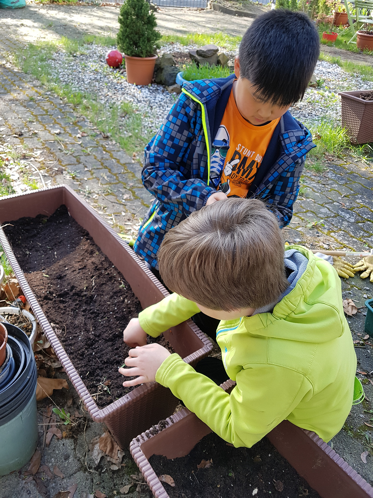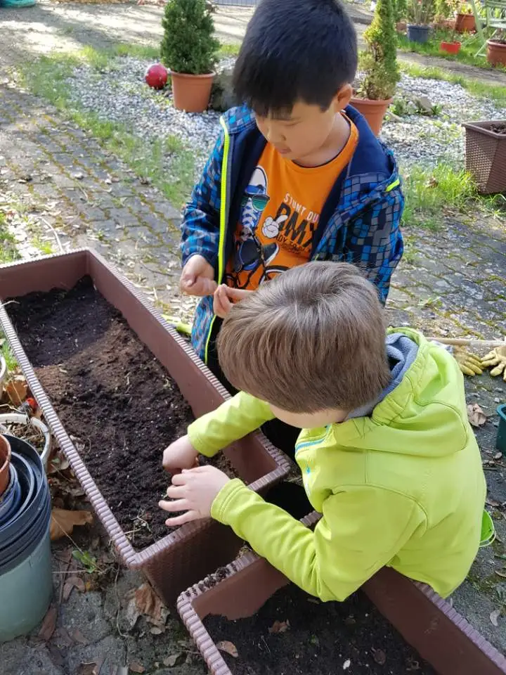 계획과는 달리 땅 파고 씨 뿌려 가며 흙을 만지는 것에 재미가 들린 아이들이 나중에는 서로 경쟁하듯이 정신없이 씨를 뿌려 대느라.. 장갑 가져다 손에 끼워주고.. 삽 가져다주고 등등을해주며 옆에 있던 내가 아차 하는 순간에 재배 장소들이 뒤섞여 버렸다. 아주 골고루...