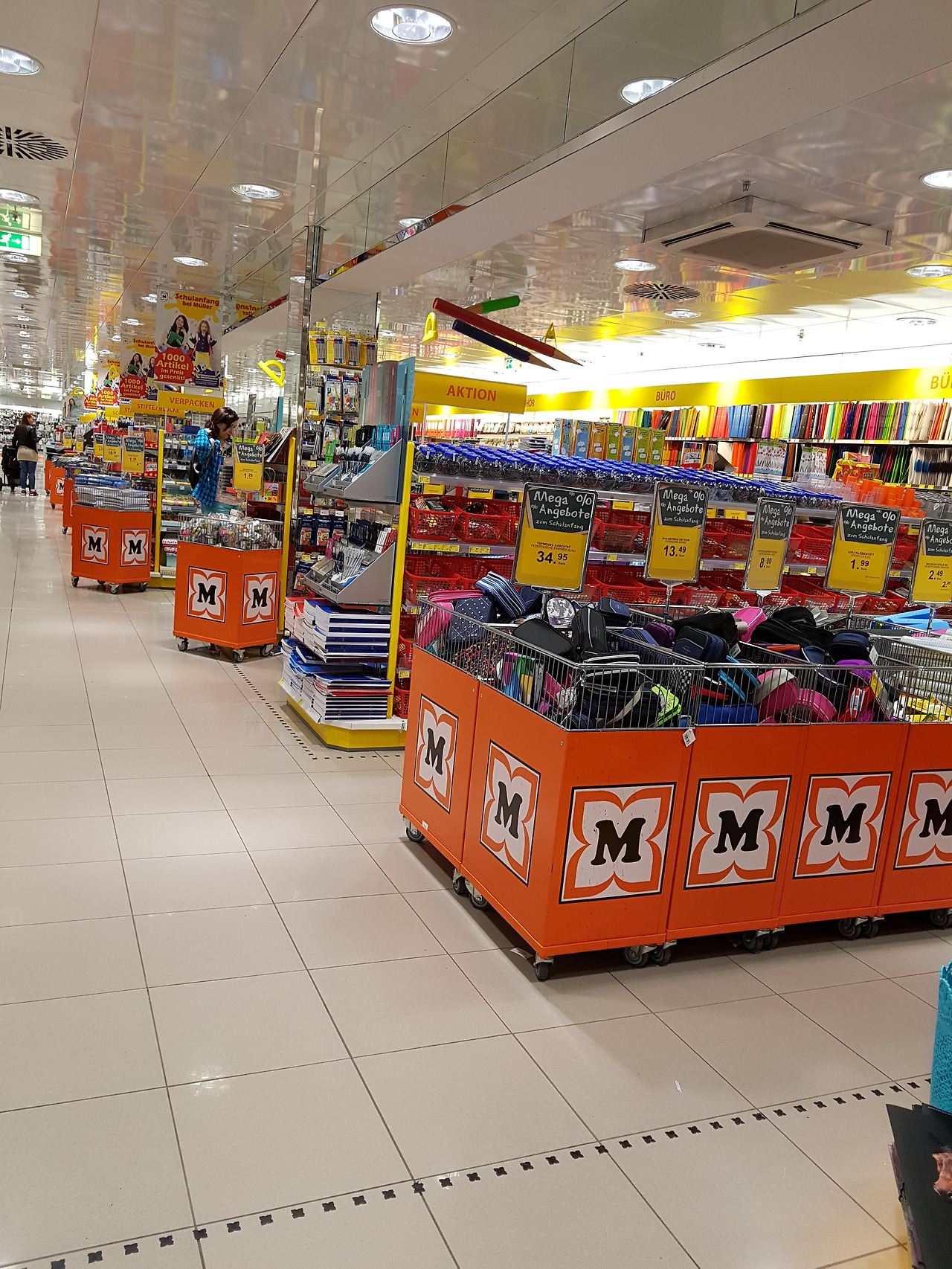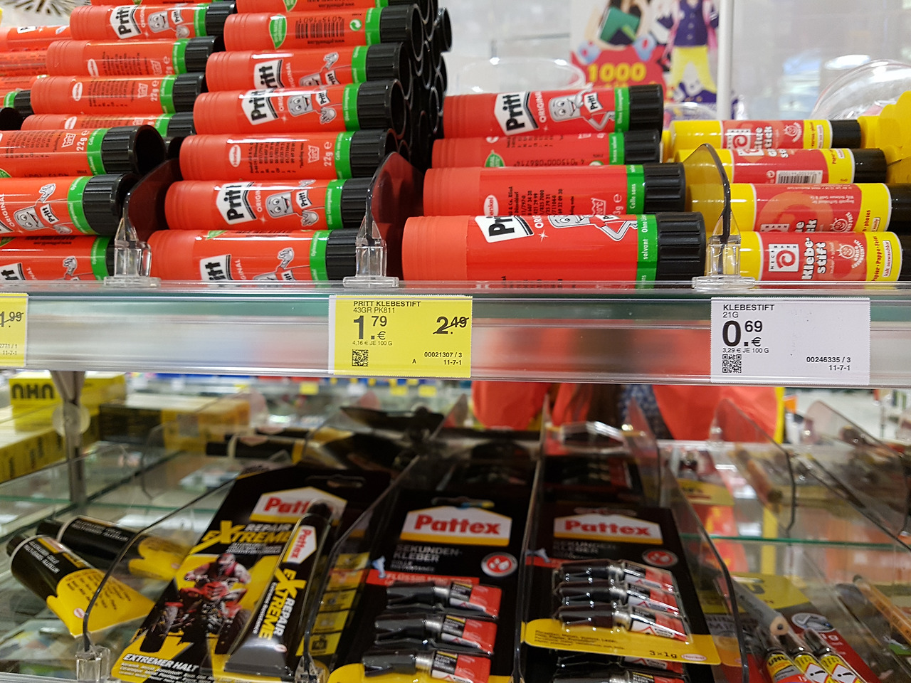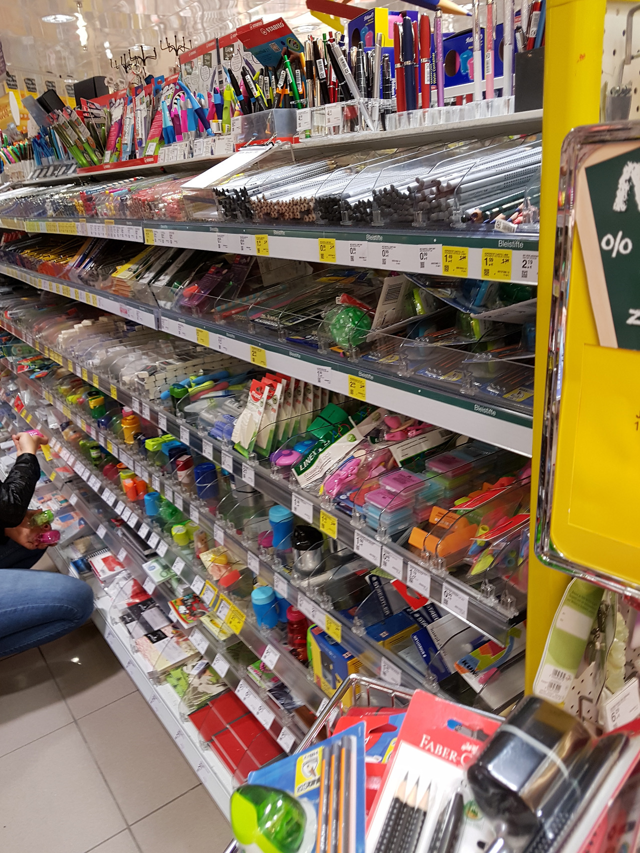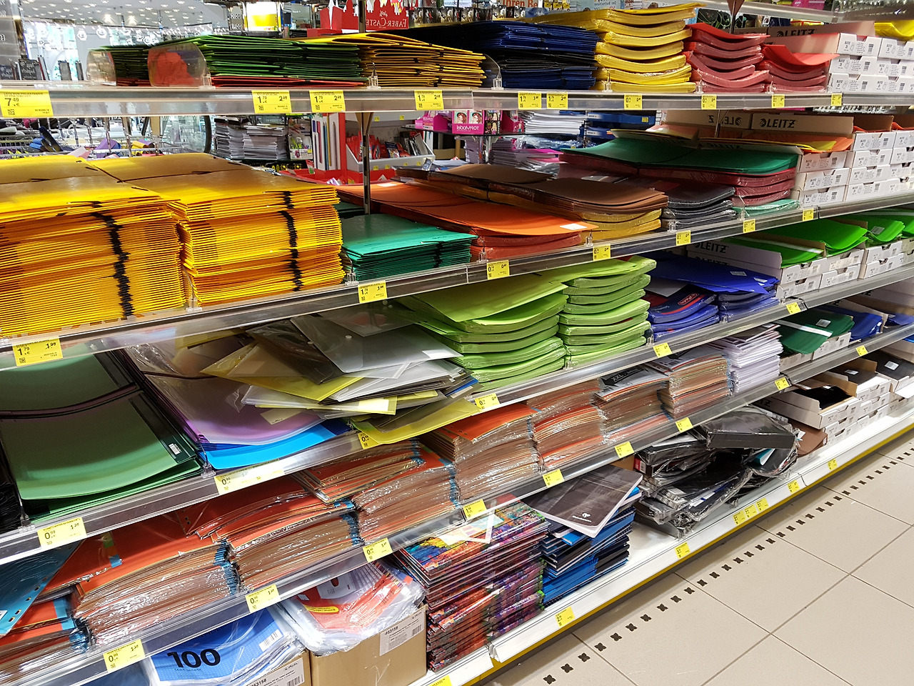 물론 독일 도 대부분의 물건 들을 모두 1유로 선에서 살 수 있는 1유로 라덴 같은 가격 착한 곳들도 있지만 학교에서 사용할 학용품은 일정 품질은 되는 것이 어야 한다. 그렇지 않으면 또 사러 나가야 하는 일이 발생하기도 한다.