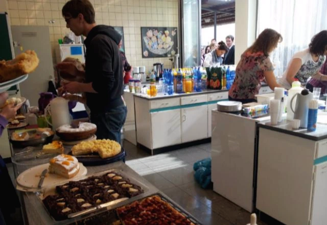 같은 반 다른 학부형 들과 인사를 나누고 맛있는 케이크와 커피 한잔도 좋았지만 부엌 한 구석에서