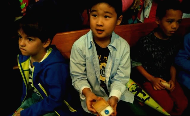 그 안에는 아이들이 아끼는 장난감, 인형, 가족들 과의 추억이 담겨 있는 가족 앨범, 책, 어린이 성경 등 하나하나씩 그 물건들이 인생에 있어 어떤 의미를 줄 수 있는지 아이들이 알기 쉽게 설명하고 나서 맨 마지막에 오늘 입학할 아이들을 앞으로 불러 모아서 모두 축복해 주고 작은 보물 상자 하나 씩을 축하 선물로 나누어 주며 모든 아이들이 세상에서 그 안에 들어 있는 보석 같은 존재 들이 되라는 목사님의 축도를 끝으로 입학 예배를 마쳤다.