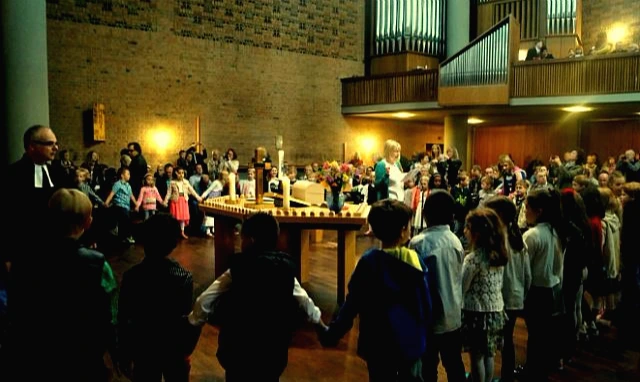 아이들 눈높이에 맞추어 커다란 보물 상자를 앞에 두고 입학 예배가 진행되었는데 (종교적인 이유로 원하지 않는 가정의 아이들은 입학예배는 생략하고 입학식 순서에 참여하기도 한다.)