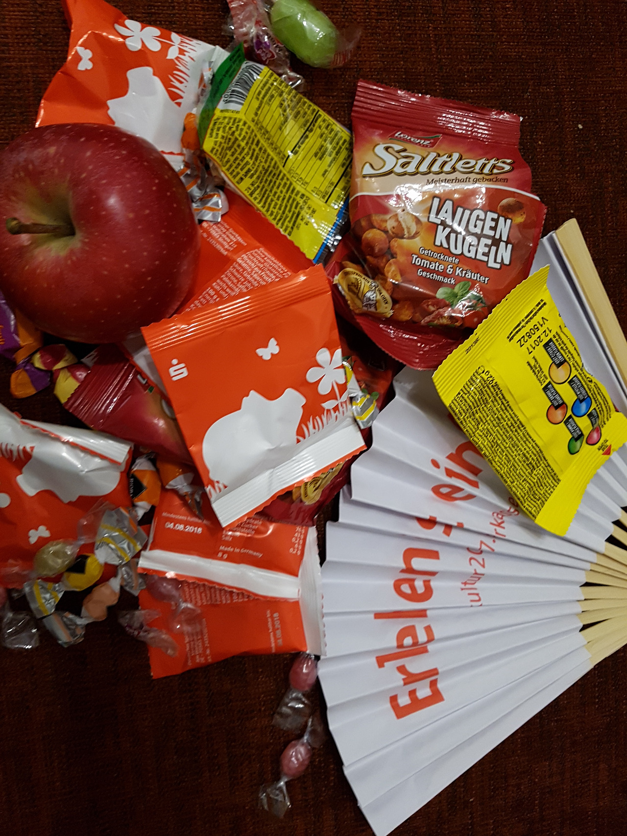 막내의 퍼레이드 행렬을 쫓아다니며 다양한 팀들이 던져 주는 선물들을 나도 모르게 본능 적으로다가 덥석 덥석 받았더니 어느새 내 가방 안도 자잘한 선물 들로 꽉 차있었다.