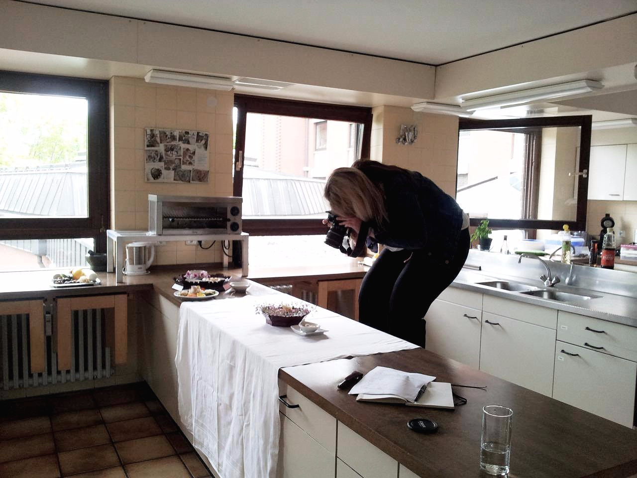 신문에 싣게 될 음식 사진 찍고