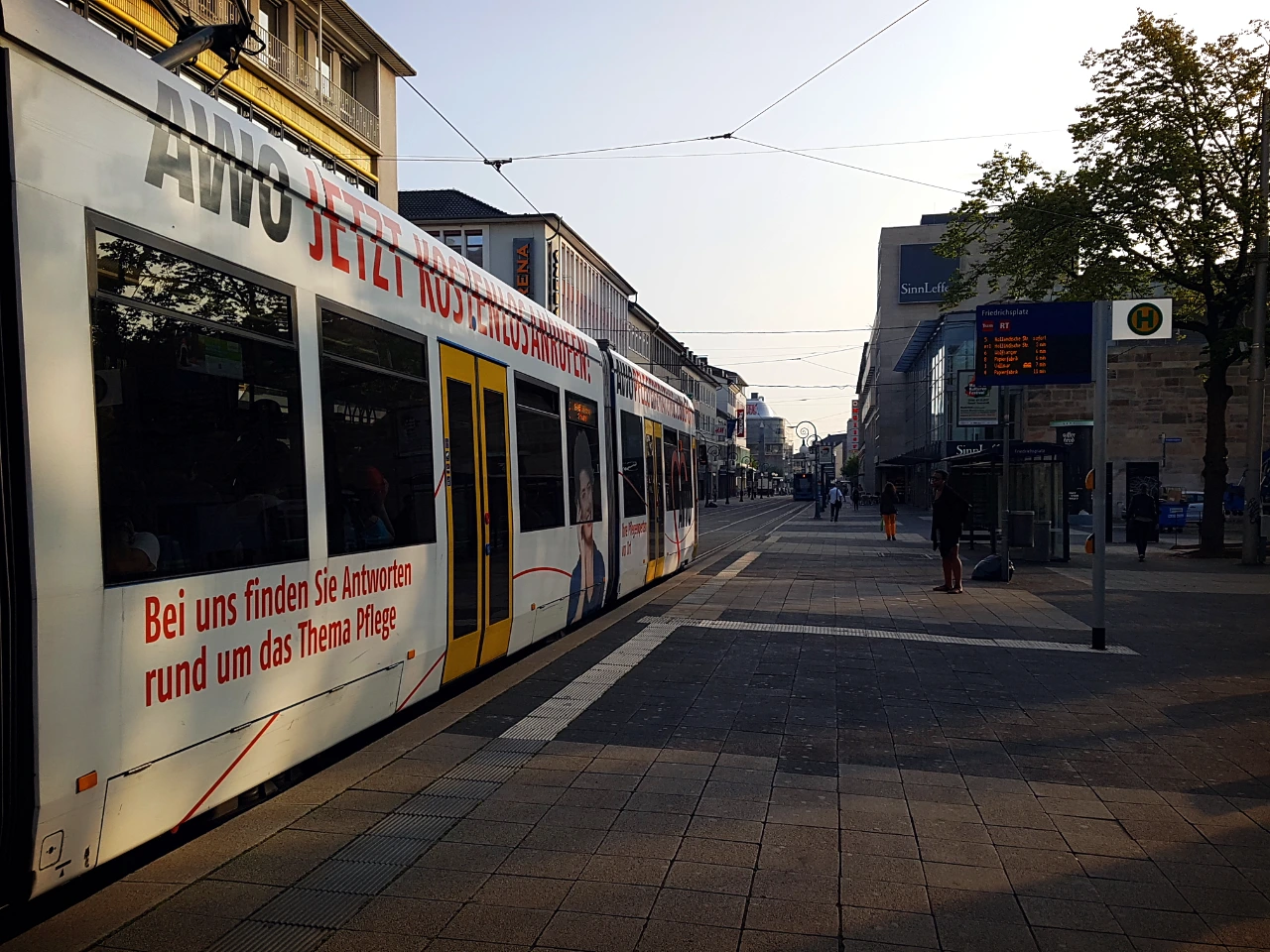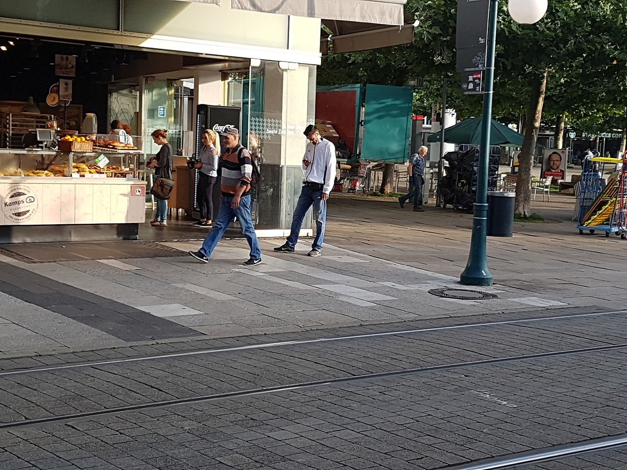 타고 가야 하는 트람이 오기를 기다리며 서성이는 사람..