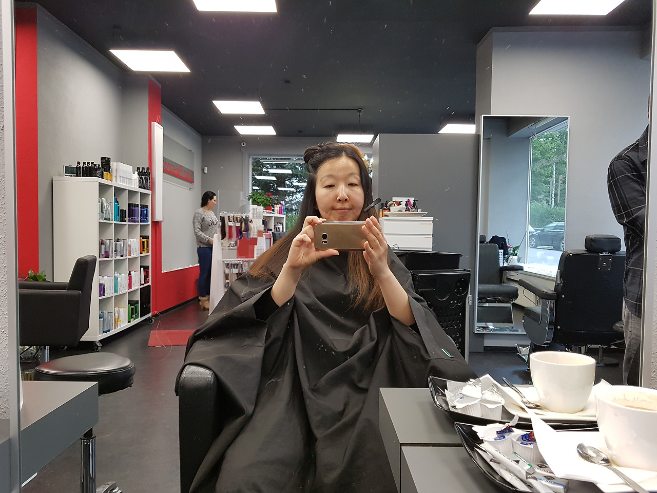 한컷 남기고 드디어 독일 미용실에서는 참으로 오랜만에 머리를 자르기 위해 가운을 걸치고 미용실 의자에 앉았다.