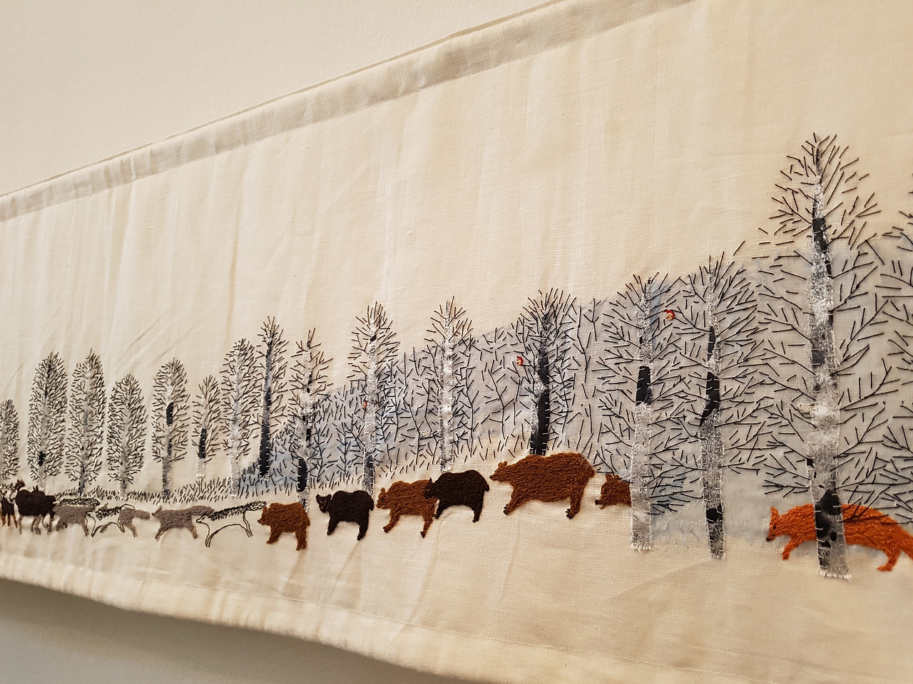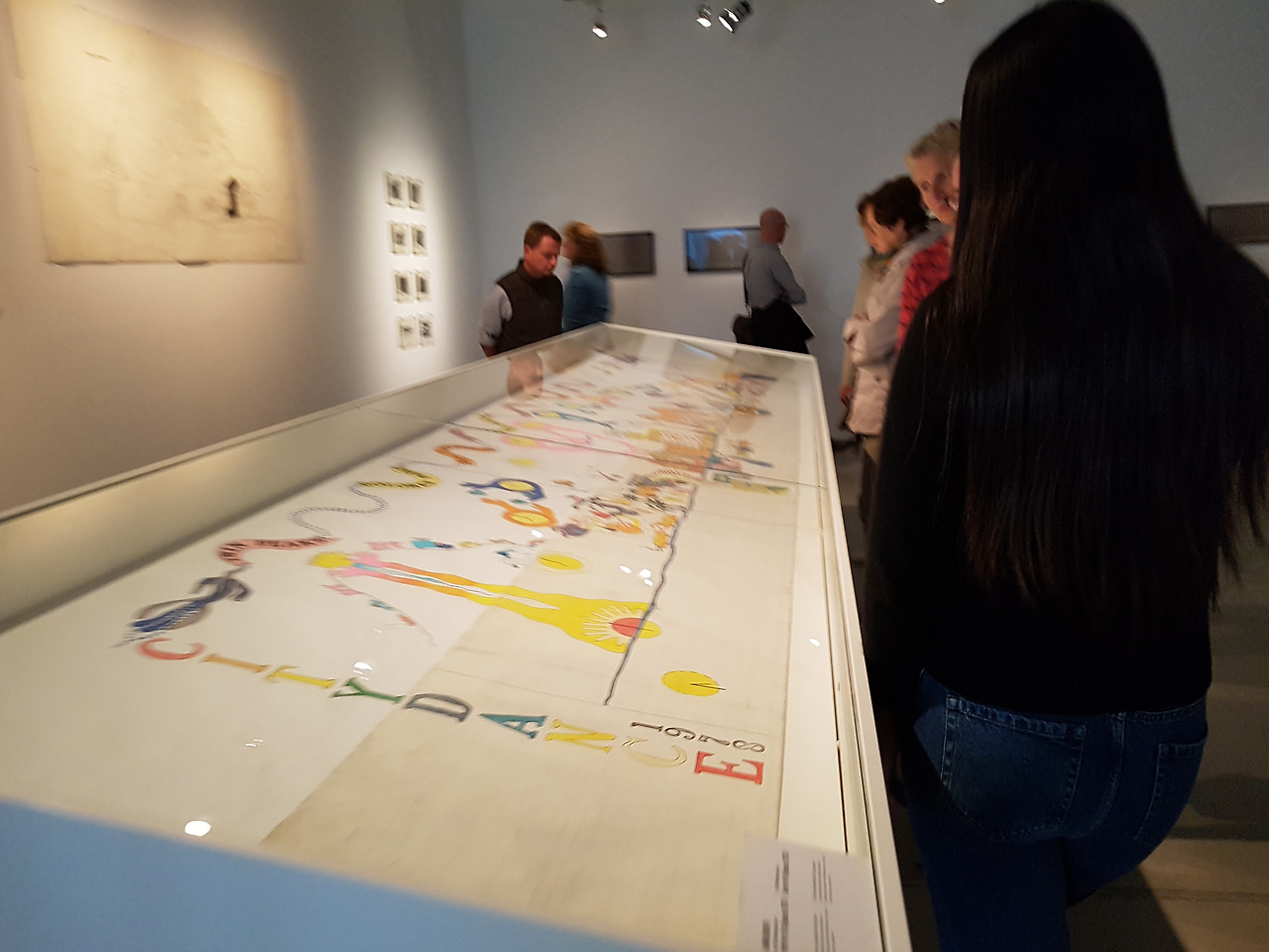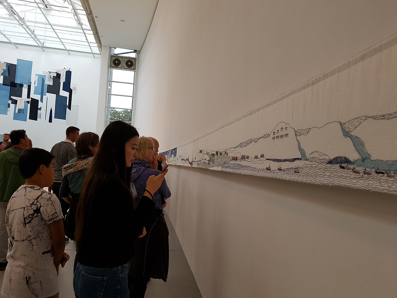 초현실주의 그림들 뿐만 아니라 긴 천 위에 병풍 위에 수를 놓듯 한땀 한땀 수를 놓아 만든 작품 부터..