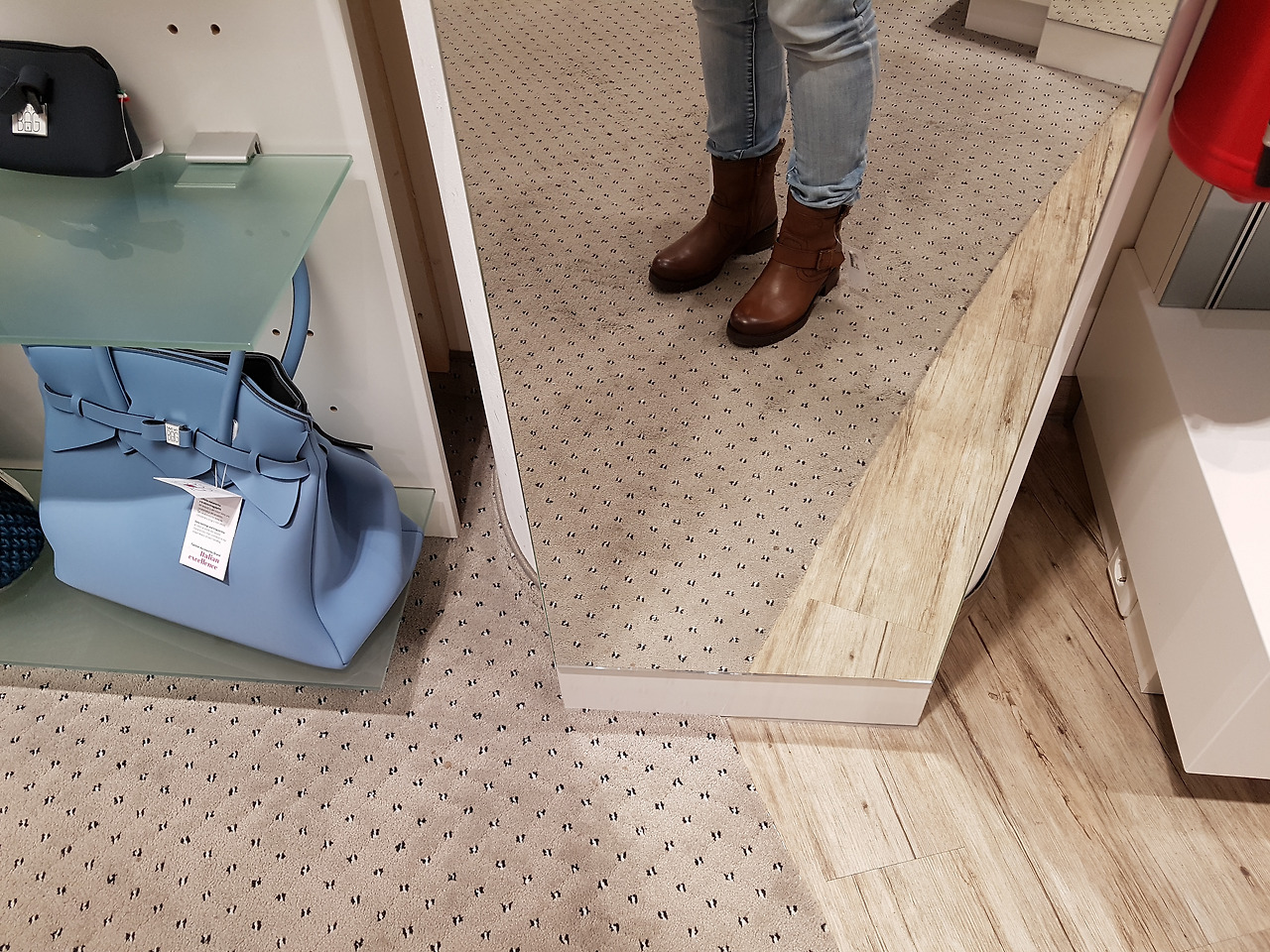 예뻐서 골라 온 검은색 롱부츠는 들어는 가나 역시나 지퍼가 제대로 잠기지 않는다.