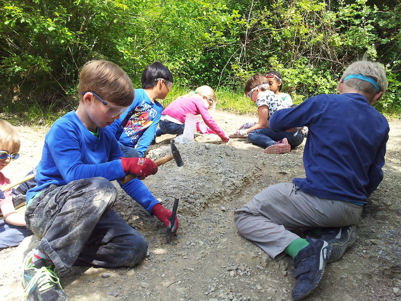 아이들이 안전 안경과 장갑을