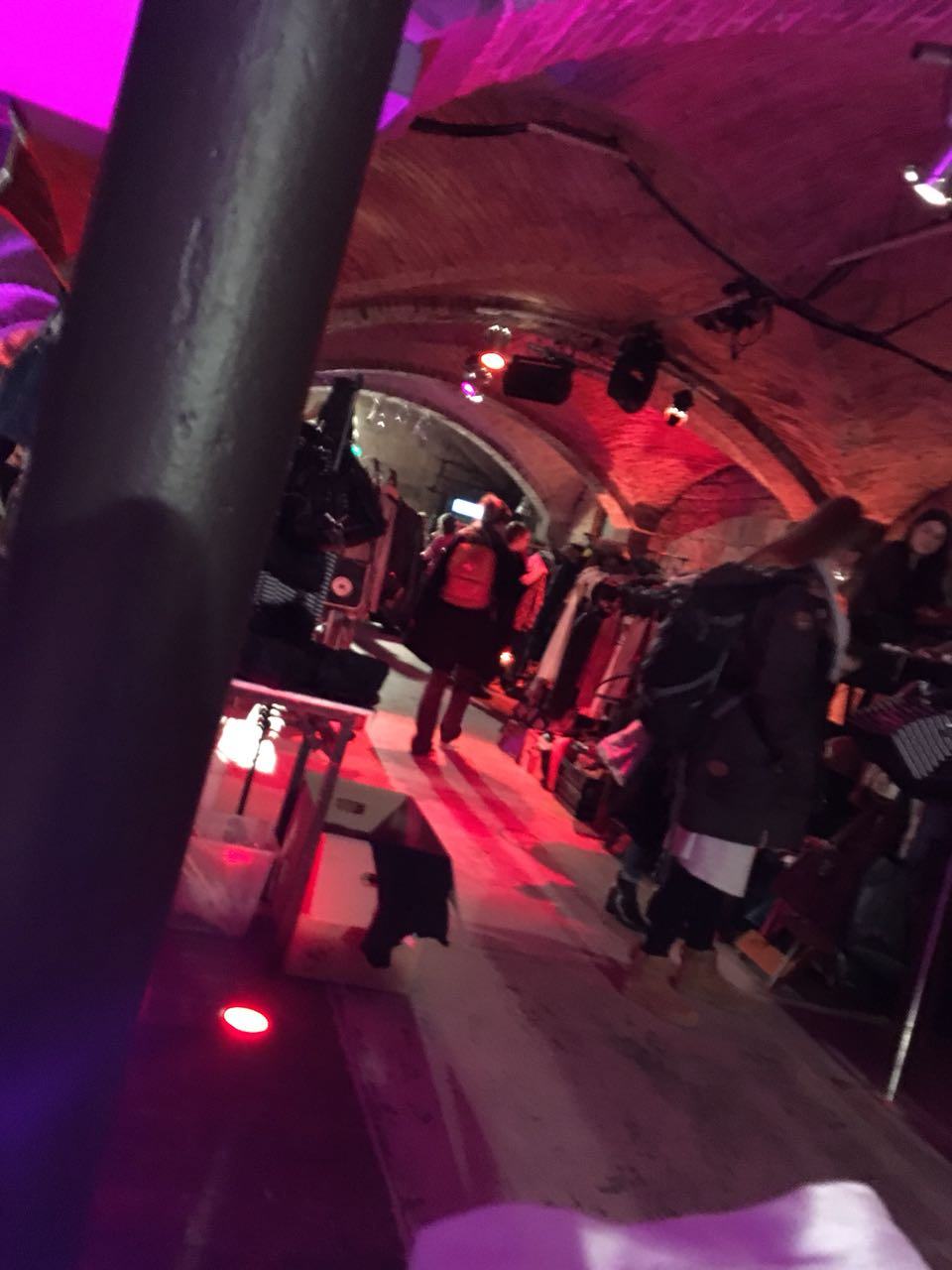 조금 어두운 것을 빼고는 그리 특별해 보이지 않는 공간 이였지만 클럽이라 해서 현대 적인 분위기를 상상하고 갔었는데 돌 고된 천장과 벽 들 그리고 사이사이 기둥들이 마치 동굴 같기도 하고 어느 와이너리 같기도 해 뭔가 클래식 한 분위기였다. 지금은 머리 위에서 쉬고 있는 반짝이 조명들 만이 여기가 어디인지 말해 주는 것 같았다.