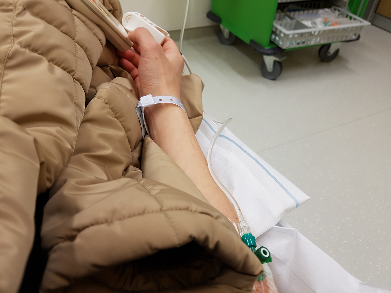 그렇게 기다리기를 두 시간이 넘어 검사를 위한 혈액을 채취하고 해열제 수액을 맞았다.