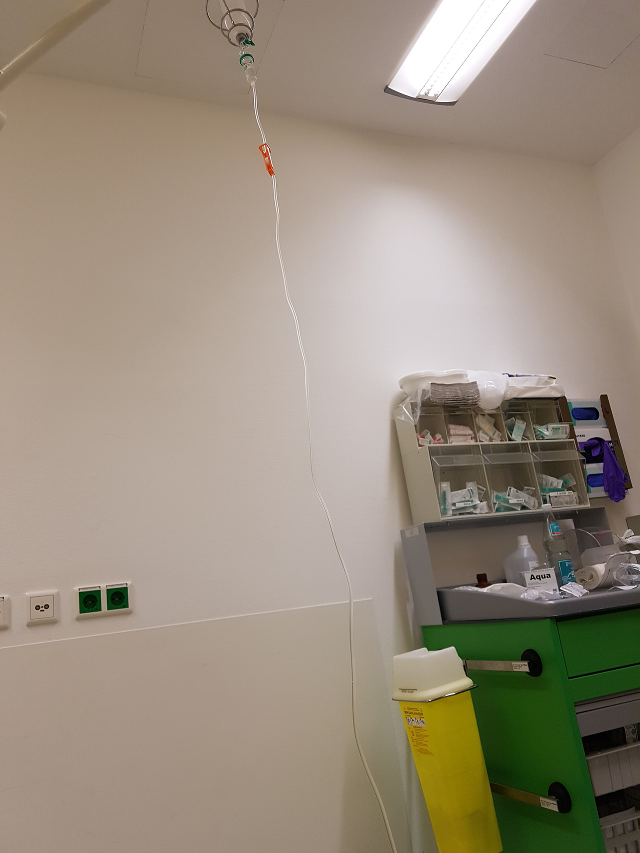 그랬더니 간호사 선생님이 저 벽 넘어 계신 의사 선생님에게 묻고는 지금 결과 나온 것들 모아서 퇴원 편지 (독일 응급실에서는 환자를 퇴원시킬 때 꼭 검사 결과와 진단 결과 그리고 앞으로 어떻게 앞으로 치료해야 할지 등의 소견이 상세히 적혀 있는 편지를 써주어야 한다.)를 작성 중이니 조금만 기다려 달라고 했다.