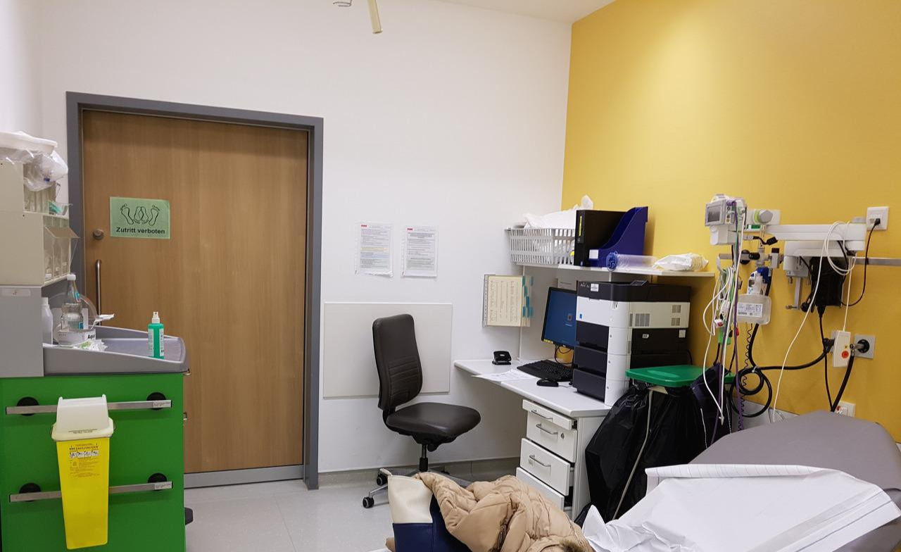 독일의 응급센터, 응급실은 대기실과 복도만 오픈되어 있고 그 외에 진료실들이 외과, 내과 등의 상황에 맞게 구분되어 모두 문이 달린 각각의 크고 작은 방으로 나뉘어 있다.