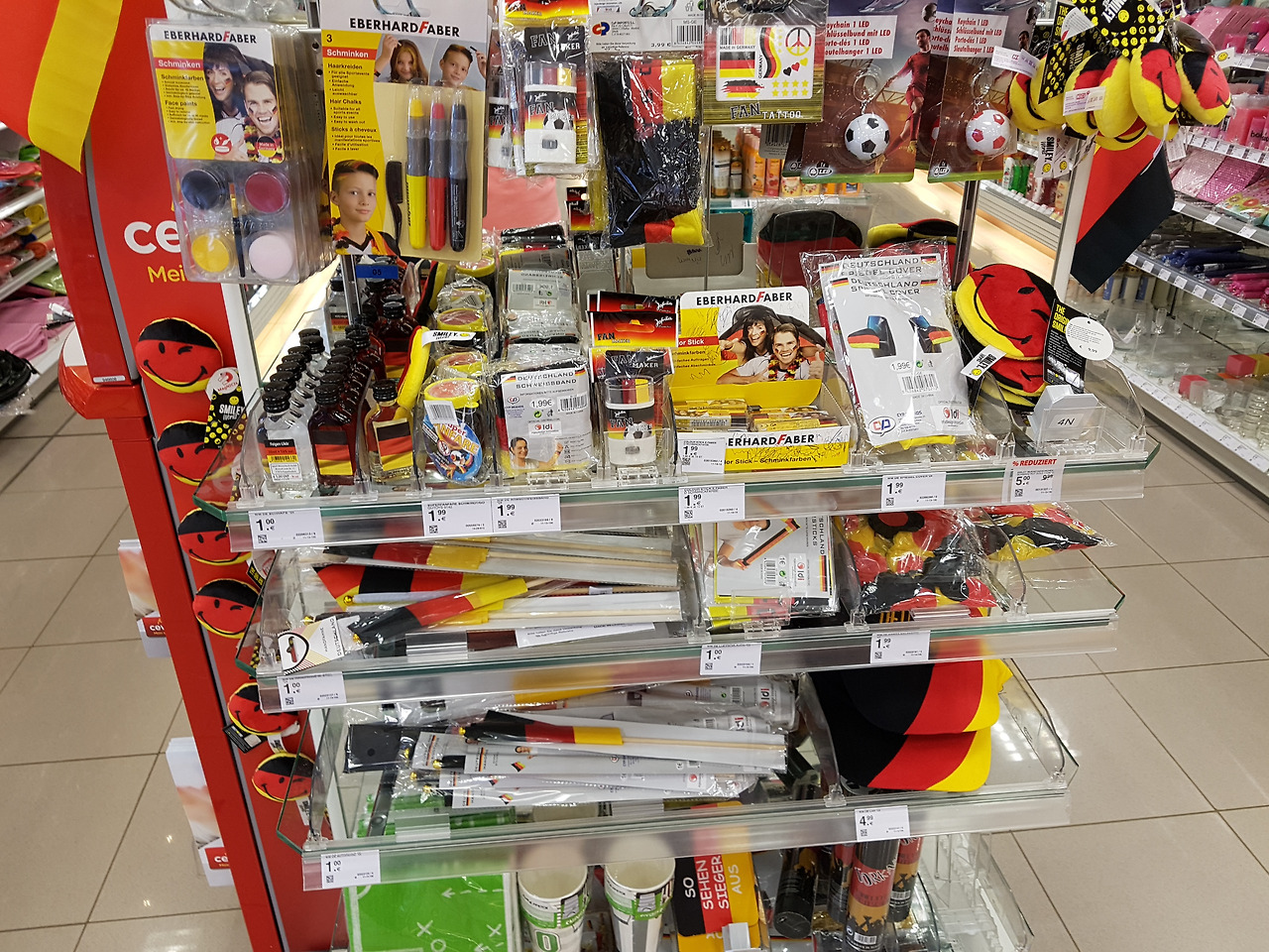 재빠르게 내려졌고..더이상 월드컵 에서 독일팀을 응원 할일도 없으니 월드컵 축구 응원때 필요한 용품 들은 몽땅 세일에 들어 갔다.