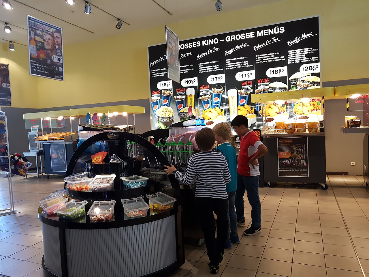 우리는 막내와 독일 친구 두명을 데리고 동네 영화관으로 갔다.