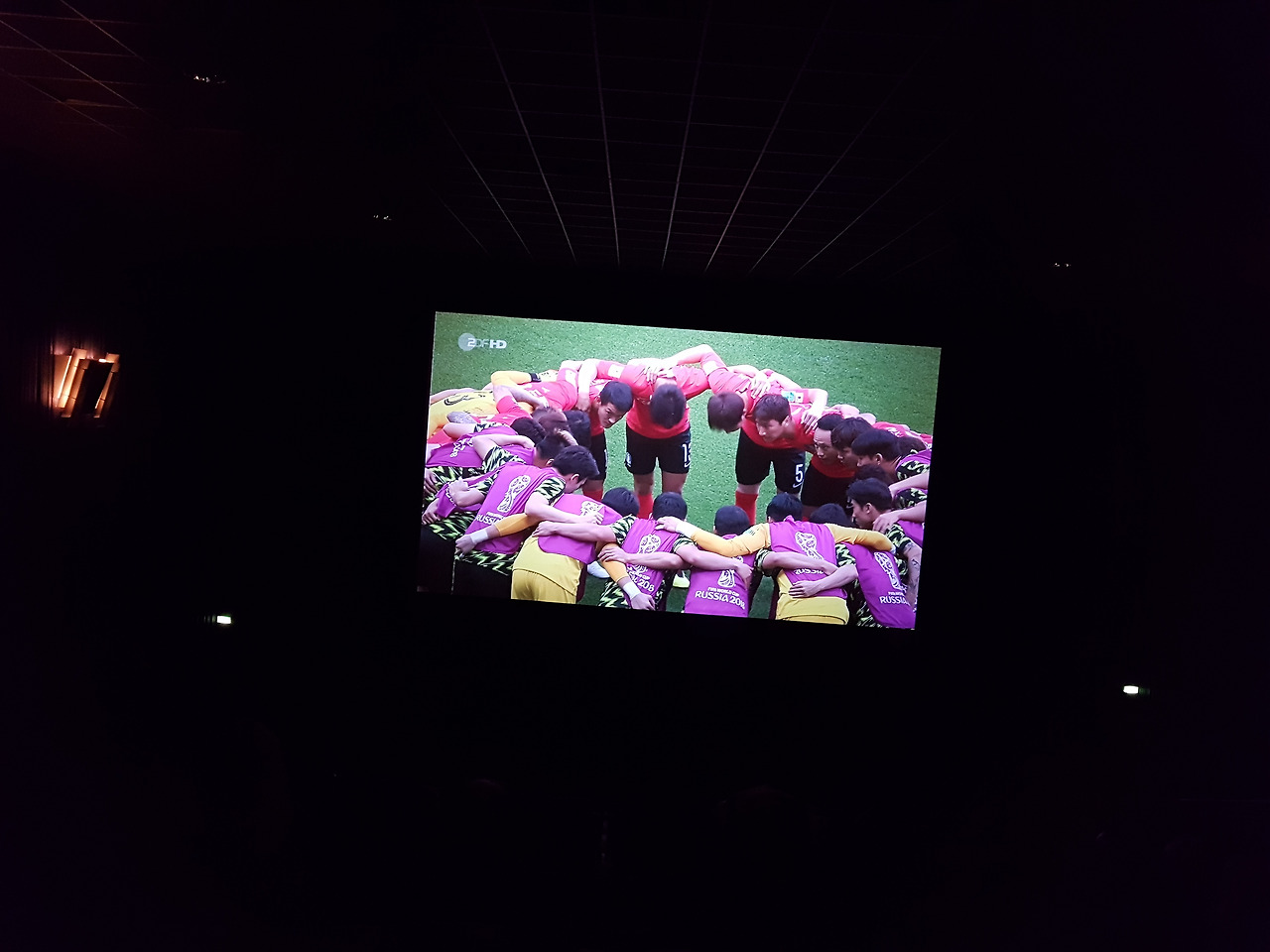 식당이나 비어가르텐 보다는 아이들 데리고 가기도 좋고 적진에서? (독일 사람들 가운데서 )아군을 (한국을 )힘차게 응원 하기에도 덜 눈치? 보이는 영화관 이벤트를 선택 했다.