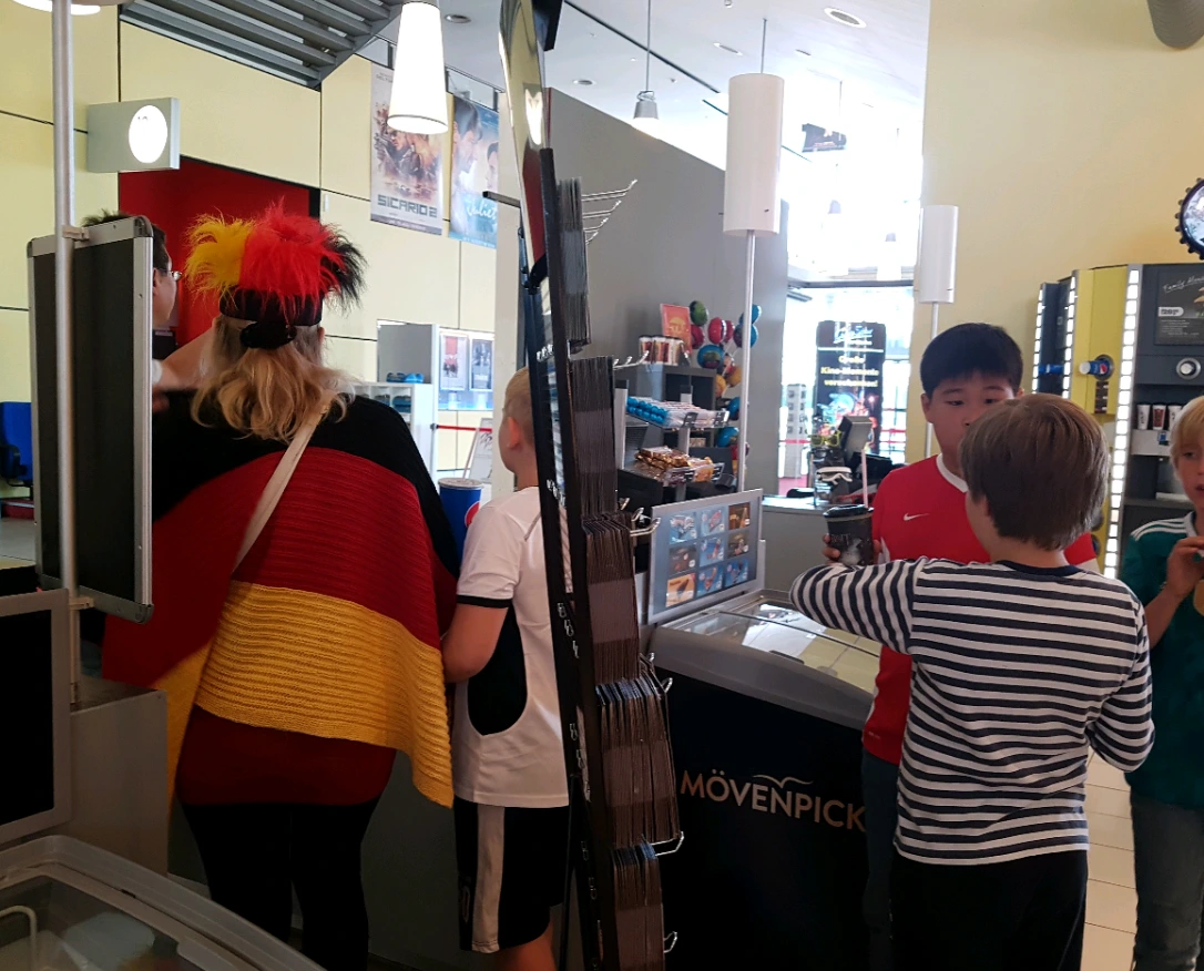 우리동네 에서 가장큰 영화관인 씨네스타 에서는 독일이 월드컵 축구 경기를 뛰는 날에는 200석이 넘는 영화관 하나를 비워 그 시간에는 영화 상영을 하지 않고 큰화면에 라이브로 경기를 내 보내는 이벤트를 했다.
