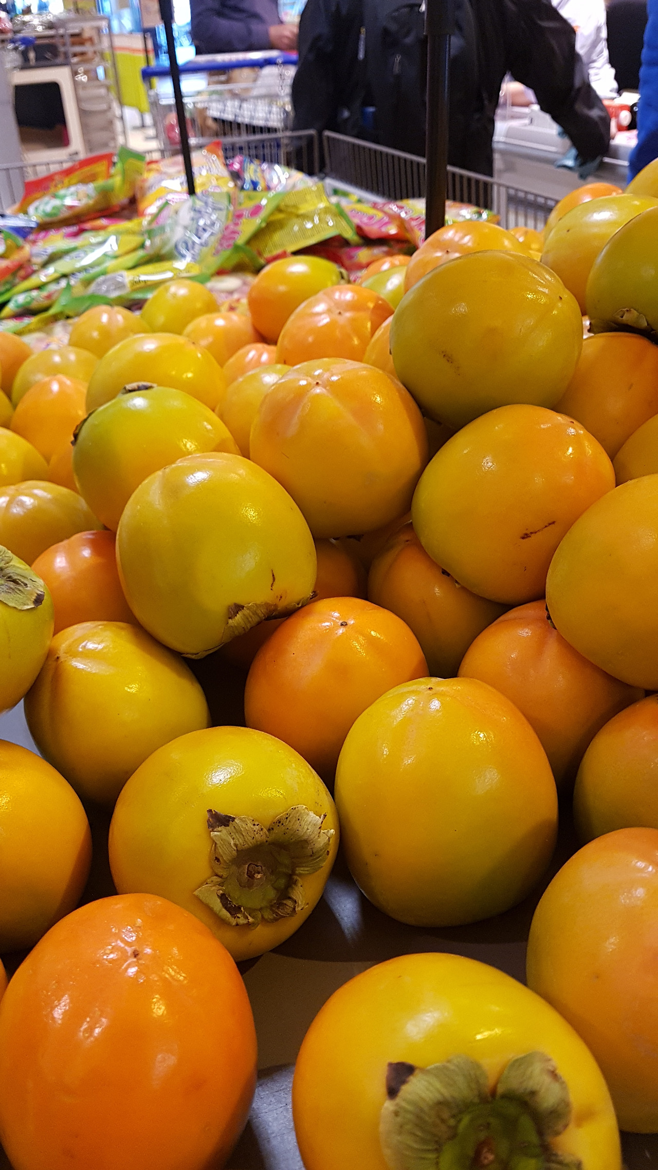 그런데 이 감들 중에 노란빛이 조금 더 적고 주홍빛이 더 도는 Kaki를 며칠 묵혀 두면 말랑해져서 숟가락으로 떠서 먹을 수 있고 아쉬운 대로 홍시의 느낌으로 먹을 수 있다.