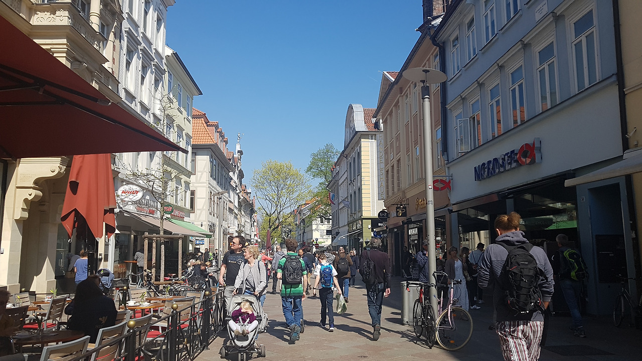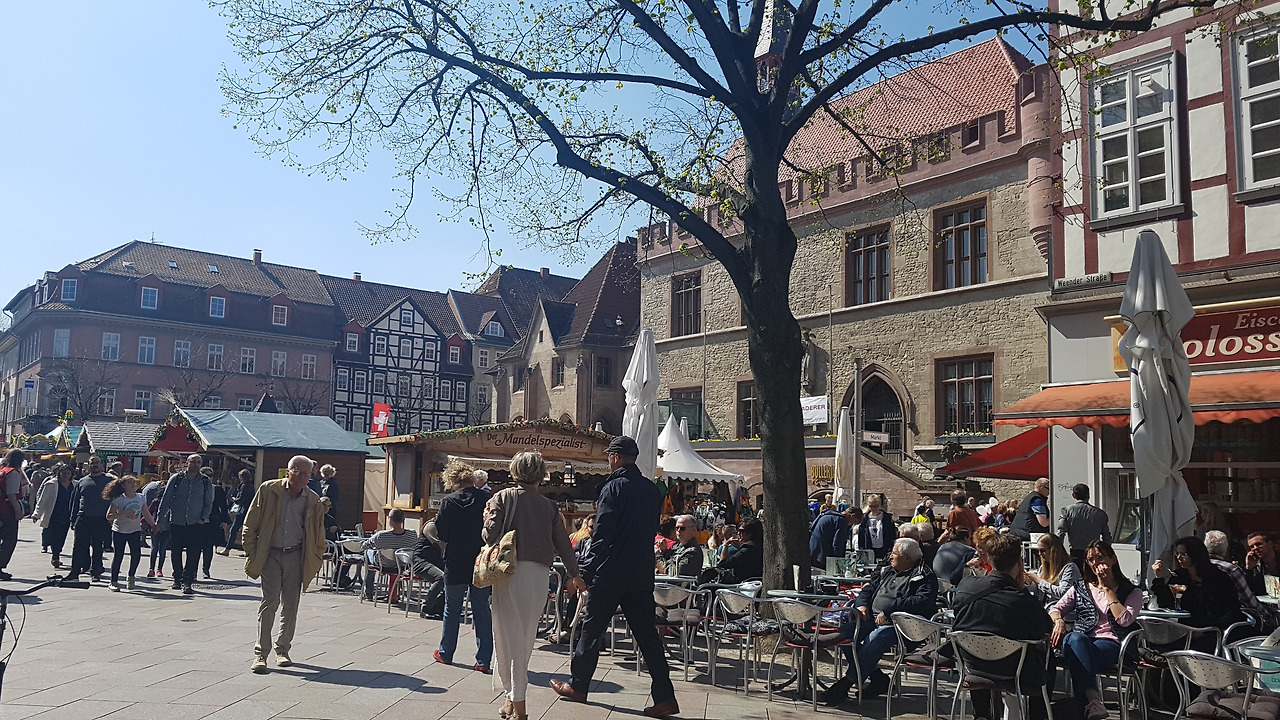 "아, 여기는 예전에 양탄자 파는 가게 였는데 ..터키 케밥집 이 되었네..저기는 우리가 저녁에 자주 가던 멘자(학생식당)인데 독일 레스토랑 으로 바뀌었어?거기는 안경점 이였는데 옷가게로 바뀌었네...