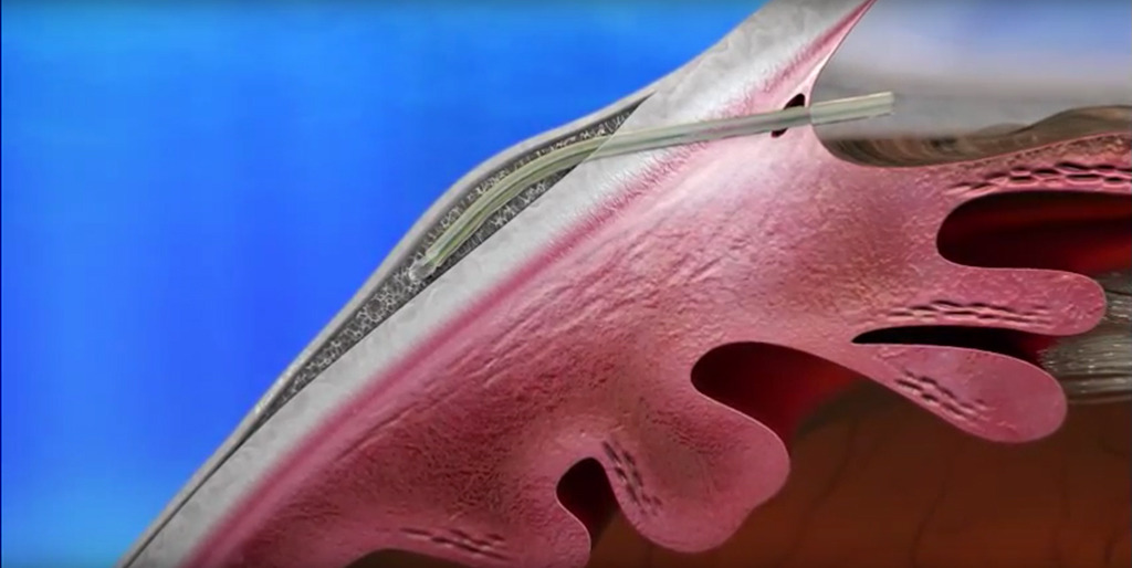 독일에서도 몇 년 전부터 하기 시작한 새로 생긴 녹내장 수술 방법의 하나인데 기존에 수술보다 부위가 훨씬 작고 부작용도 적어서 수술 예후가 좋다고 했다. 눈 안의 물이 밖으로 원할이 빠져나가지 못해서 안압이 올라가고 그로 인해 시신경이 손상되는 녹내장 증상을 작은 관을 눈 안에 넣어 주어서 잘 빠져나가지 않던 방수를 나갈 수 있게 인위적으로 길을 만들어 주어 안압을 조절해 준다는 것이다.