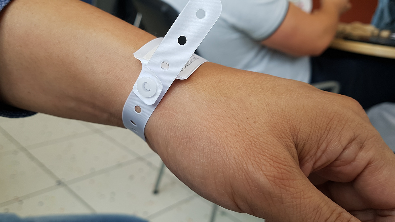 수술 환자에게 채워 주는 팔찌